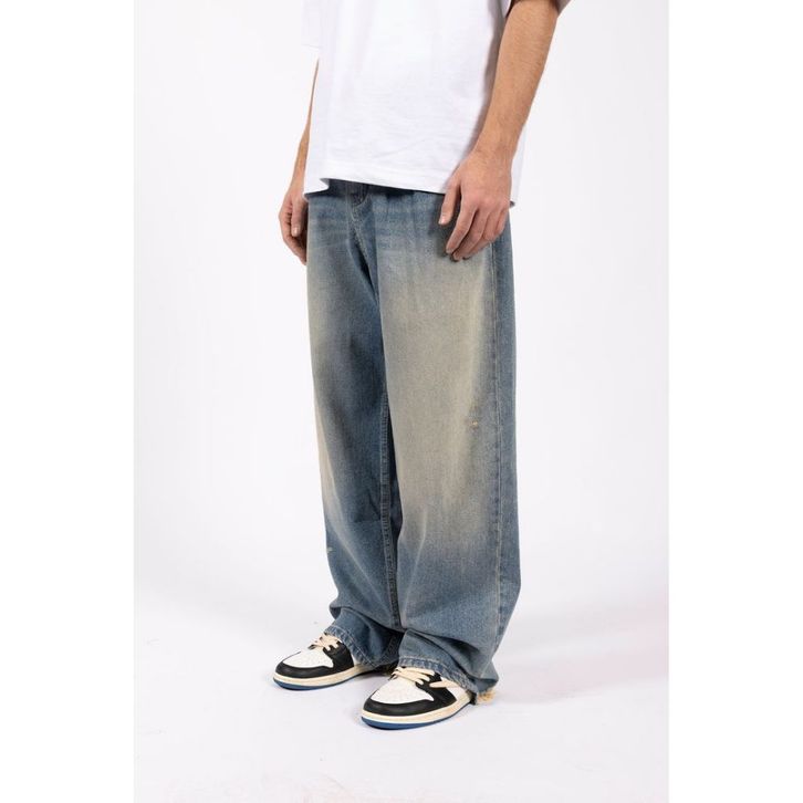 OZA.LTD - Celana Jeans Wide Leg Wisker Lebar Gombrong Skena Black Pria Loose Fit Jumbo