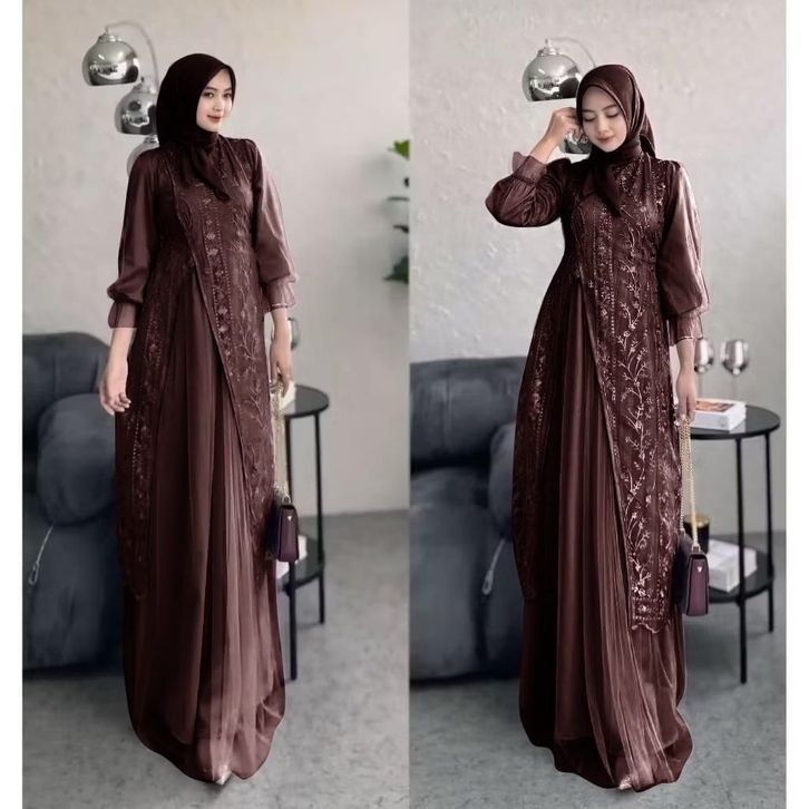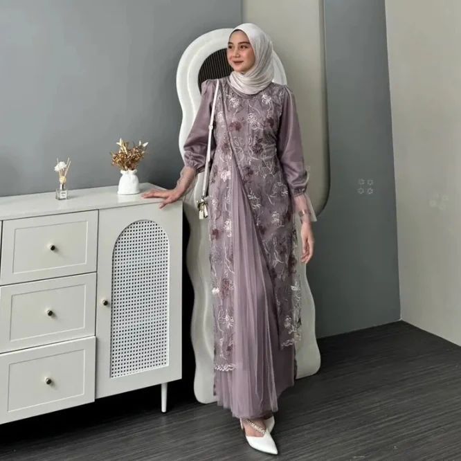 laura dress gamis wanita kekinian gamis Pesta Kondangan gamis lebaran 2026 velvet mix tille garden