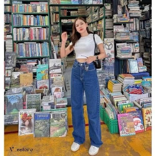 Celana Kulot Jeans Wanita Highwaist - Highwaist Baggy Jeans Retro Blue - Jeans Loosepant Gombrong