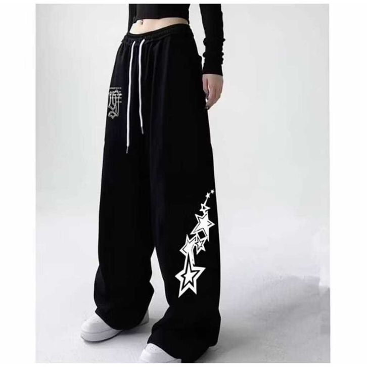 Letter Stars Printing Sweat Pants Celana Kulot Oversize - Celana Panjang Wanita Pants Korean Style
