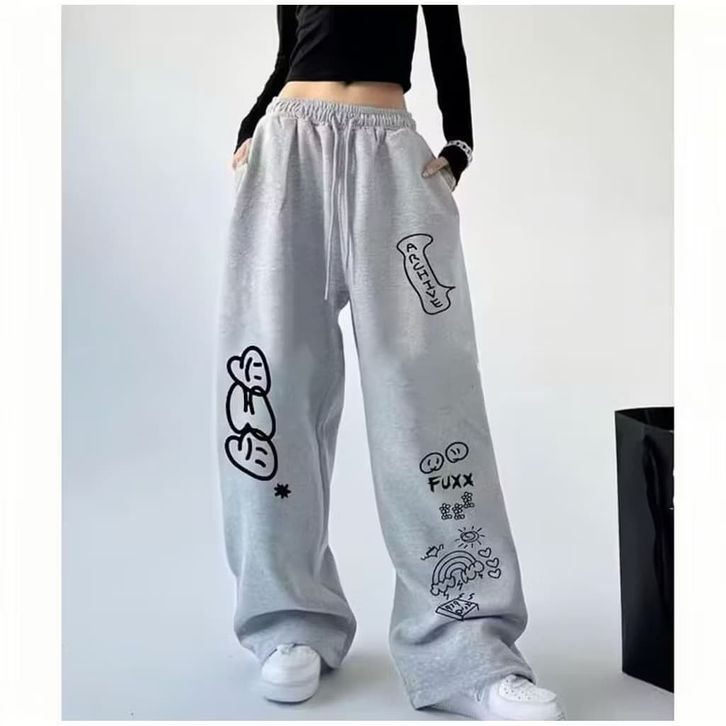 Archive Baggy Pants Celana Kulot Longgar Printing Style Korean Y2K Motif