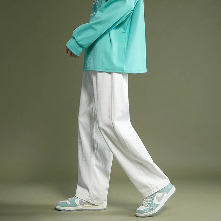 Celana Jeans Pria Baggy Pants Korean Style Oversize Loose Blue and Black Snow Jeans Straight Kulot Panjang Pria