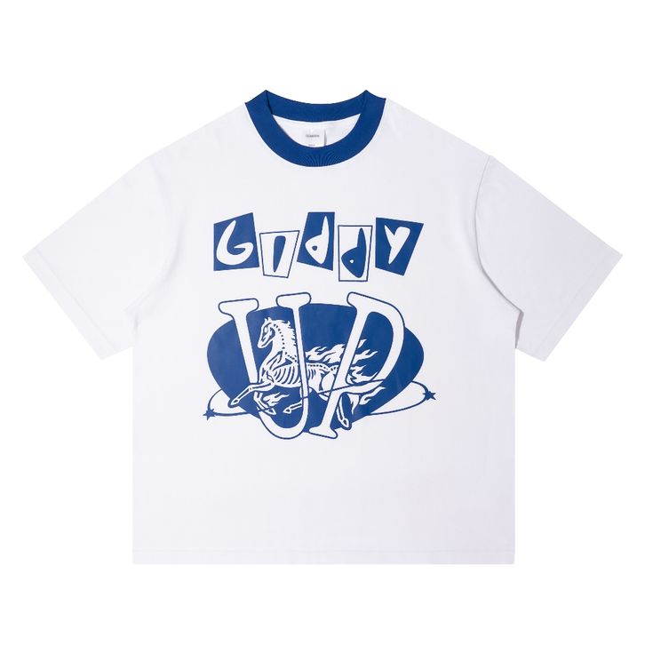 Eudaimonia - Boxy Fit Oversize Tee Print Giddy Up White Cotton Combed 20s