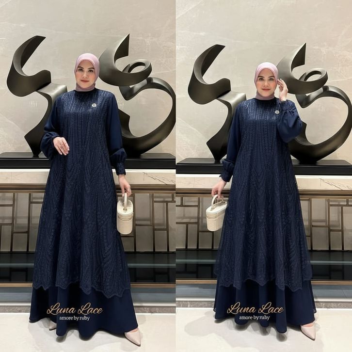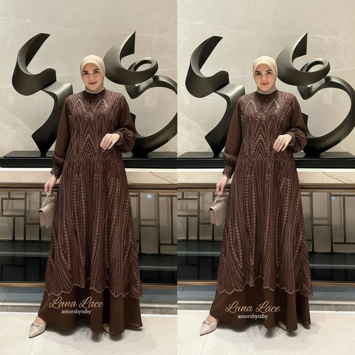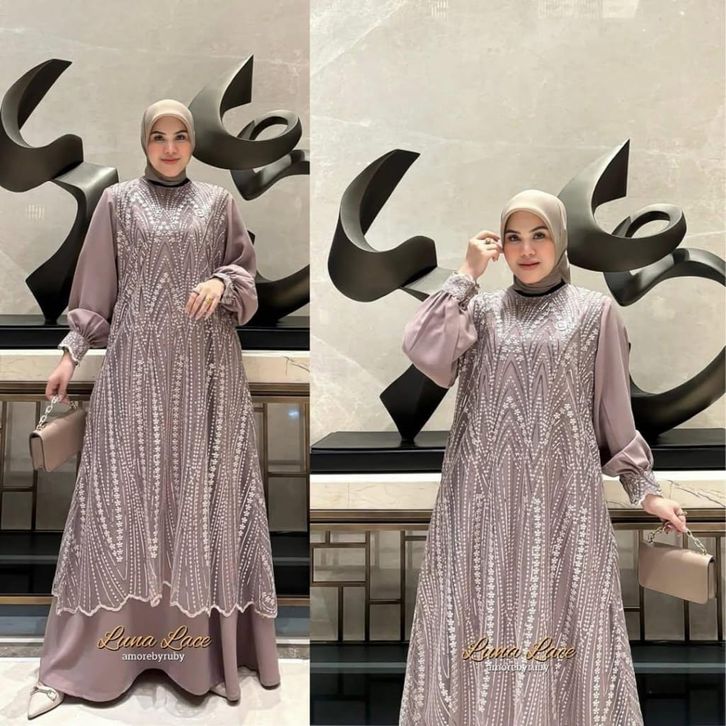 Luna Dress Brukat Silk Mix Tile Spanggel Burgandy Dress Kondangan Mewah Terbaru Gamis Pesta Kekinian