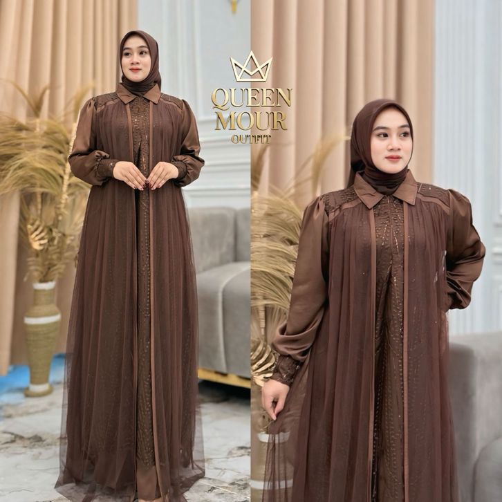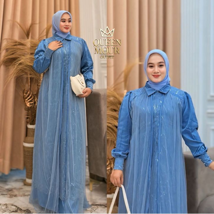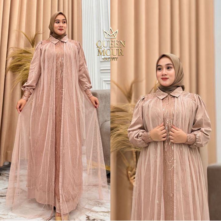 Gamis Ibu Ibu Terbaru Messa Dress Silk Mix Brukat Tille Premium Warna Viral Resleting Depan Gamis Lebaran 2026
