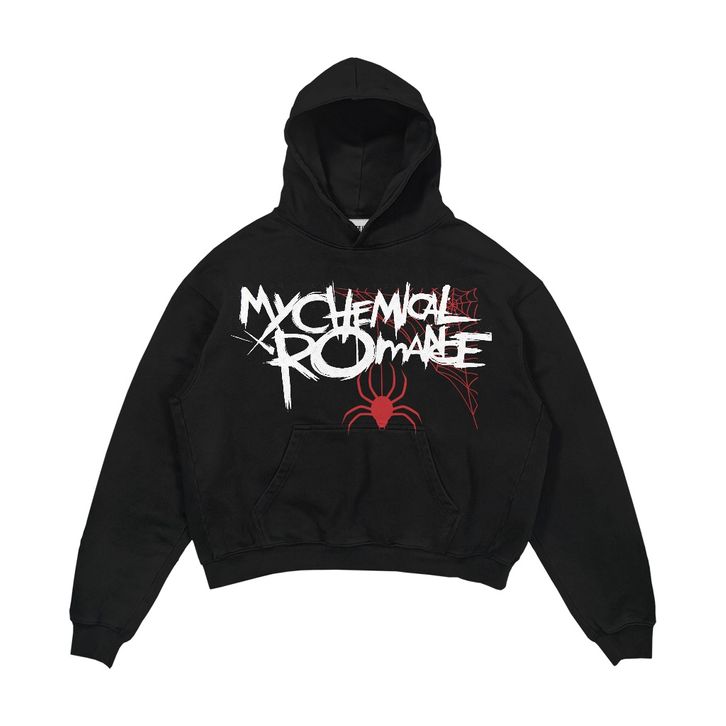 Hoodie Boxy Oversize Hitam MCR My Chemical Romance Sipeder Unisex Fleece Tebal 300gsm