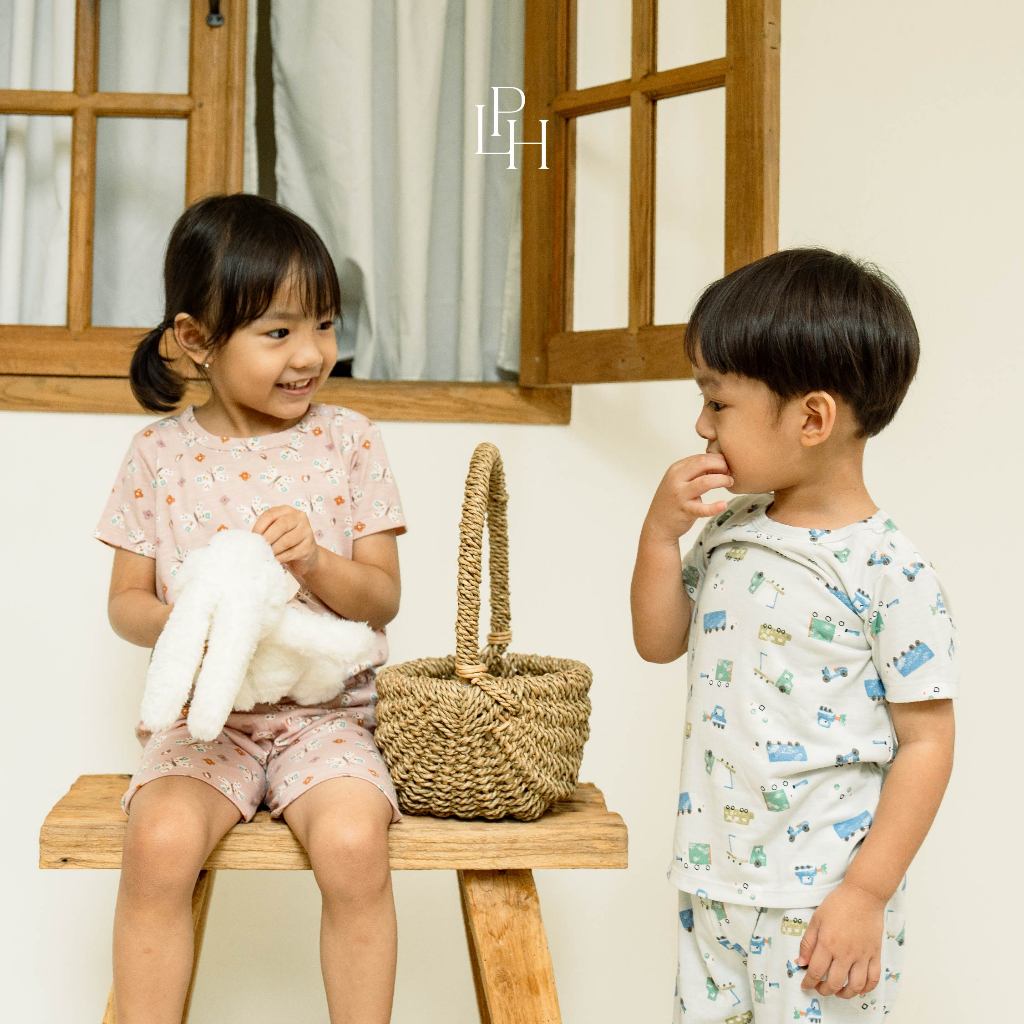 LITTLE PALMERHAUS - LITTLE WEAR SHOULDER BUTTON SHORT SET (SETELAN ANAK LENGAN PENDEK)