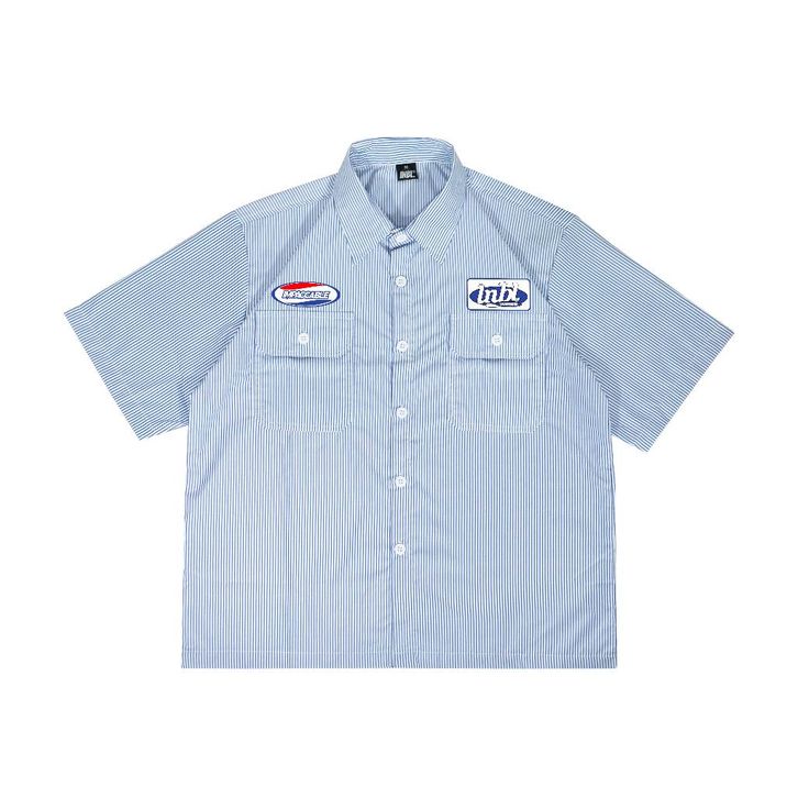 INBL Workshirt Pinstripe Boxy Stripe Navy White