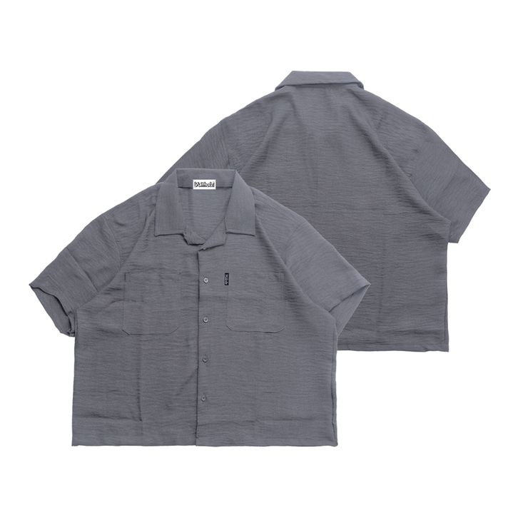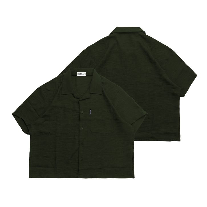 VUITHOLZ Boxy Shirt Crinkle Pria Warna Solid