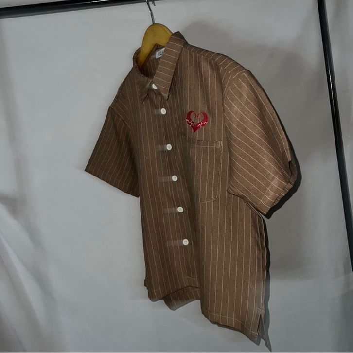Louvic - Kemeja Stripe Boxy Fit Crop Skena - Kemeja Strip Coklat