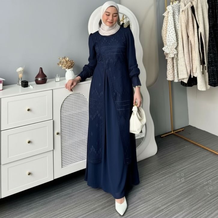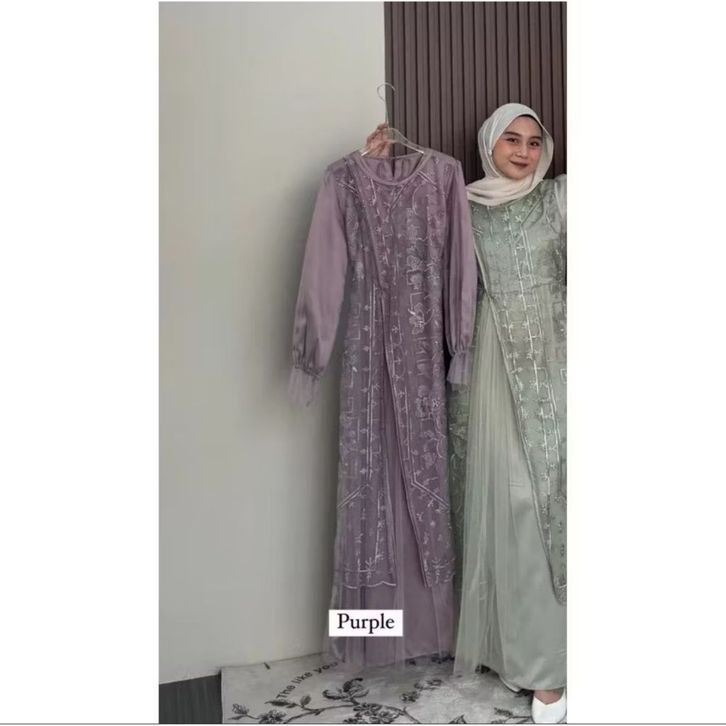 Kinar Dress Silk Kombinasi Tile Garden Premium Warna Burgundy Gamis Brukat Tile Pesta Wanita Mewah