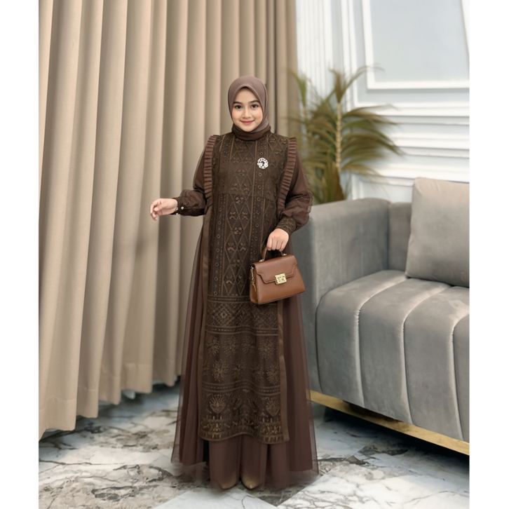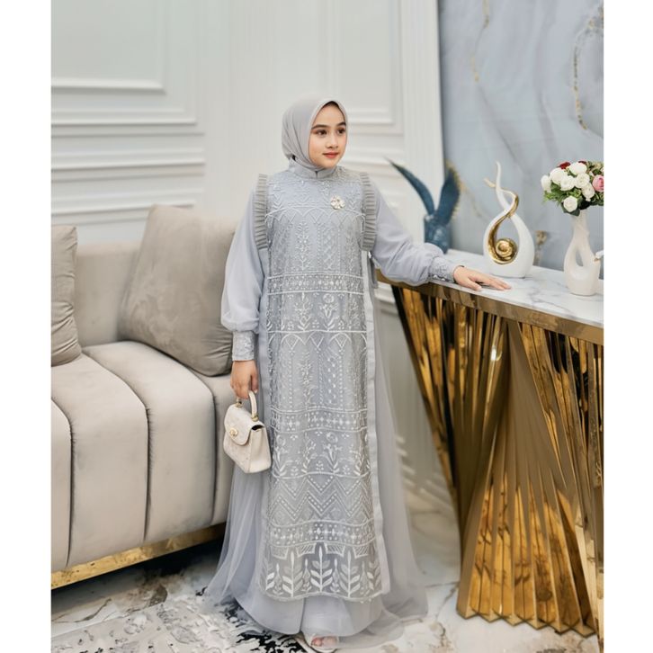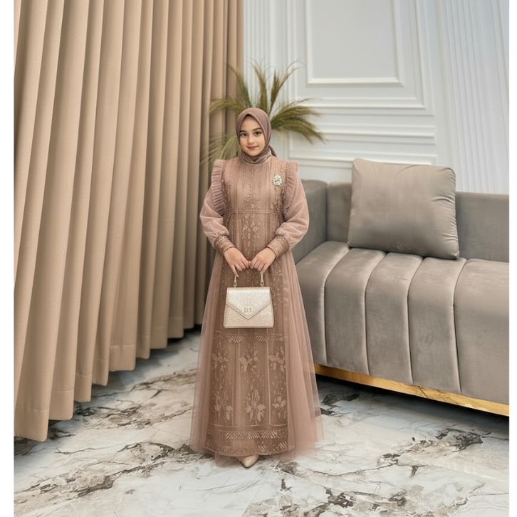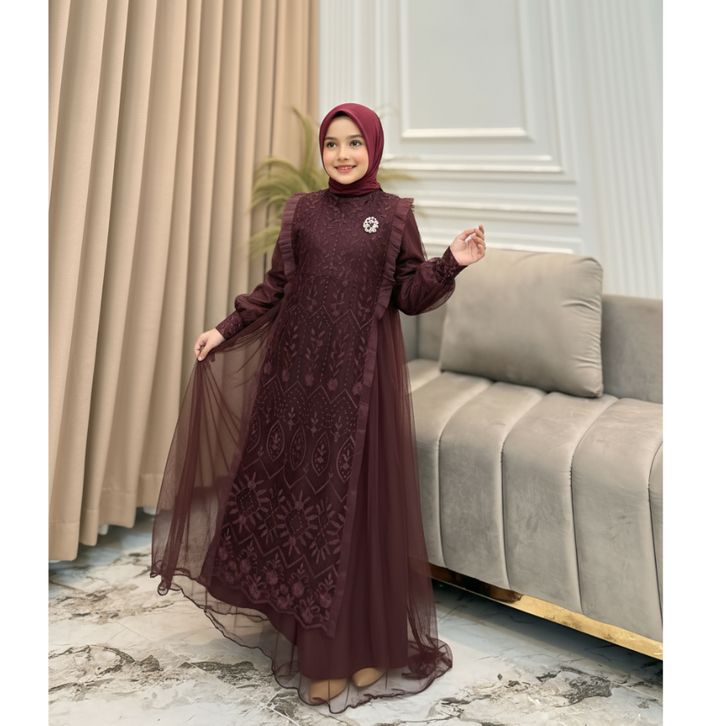 Gamis Pesta Anak Perempuan Mewah Burgandy Nikita Dress Kids Usia 7 Sampai 13 Tahun Baju Brukat Anak