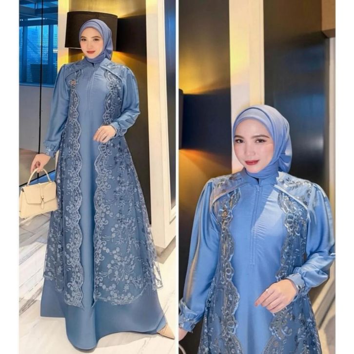 Dress Gamis Wanita Kekinian Vireya Gamis Burgandy vilvet PREMIUM mix brokat ziper depan mewah elegan ootd Gamis Lebaran