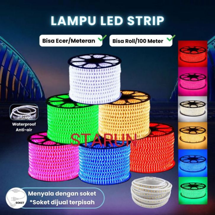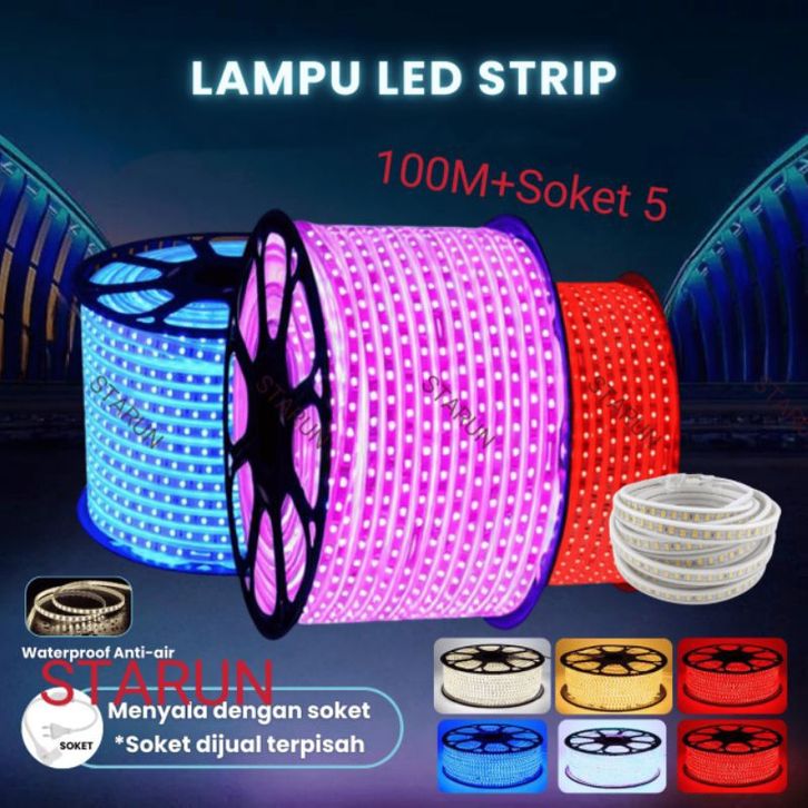 Lampu Led Roll LED STRIP LAMPU STRIP lampu RAMADHAM idul fitri SMD AC 220V Lampu Led Strip Selang 100M+Soket 5pcs Out
