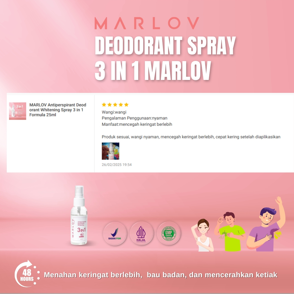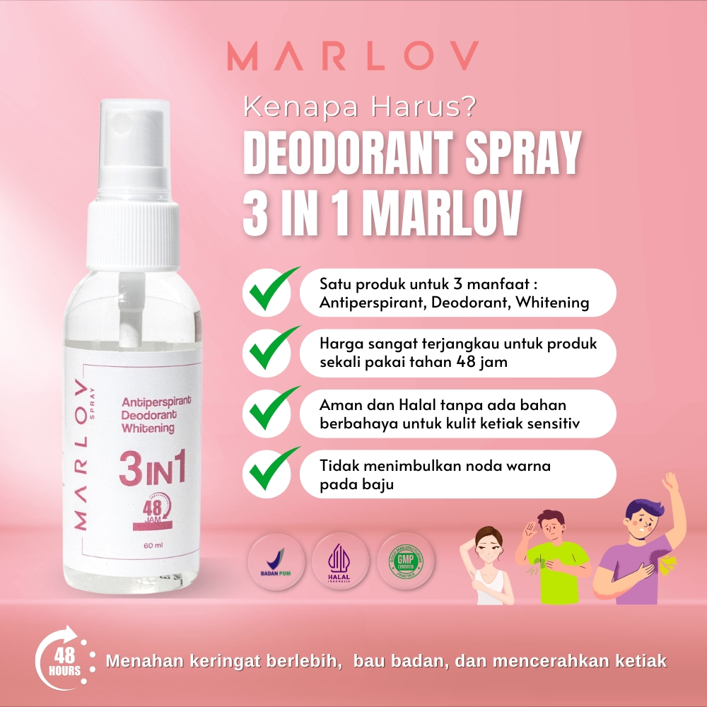 MARLOV ANTIPERSPIRANT DEODORANT WHITENING 3IN1 SPRAY SEMPROT TAHAN 48JAM ANTI BAU KETIAK 60ML