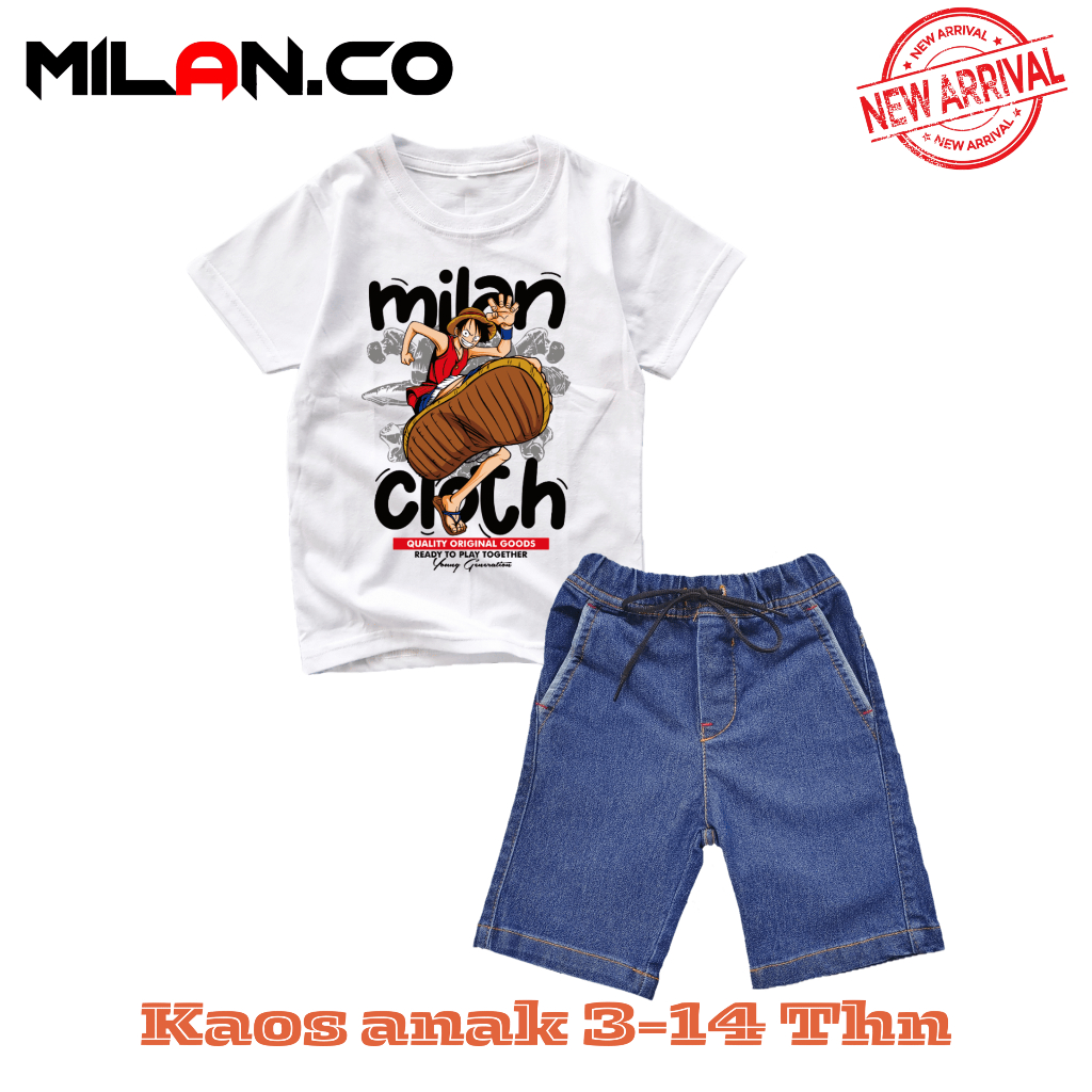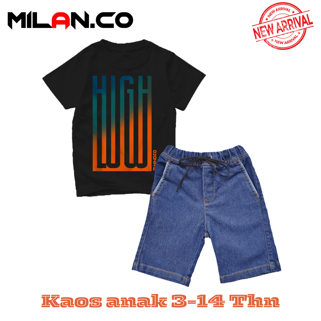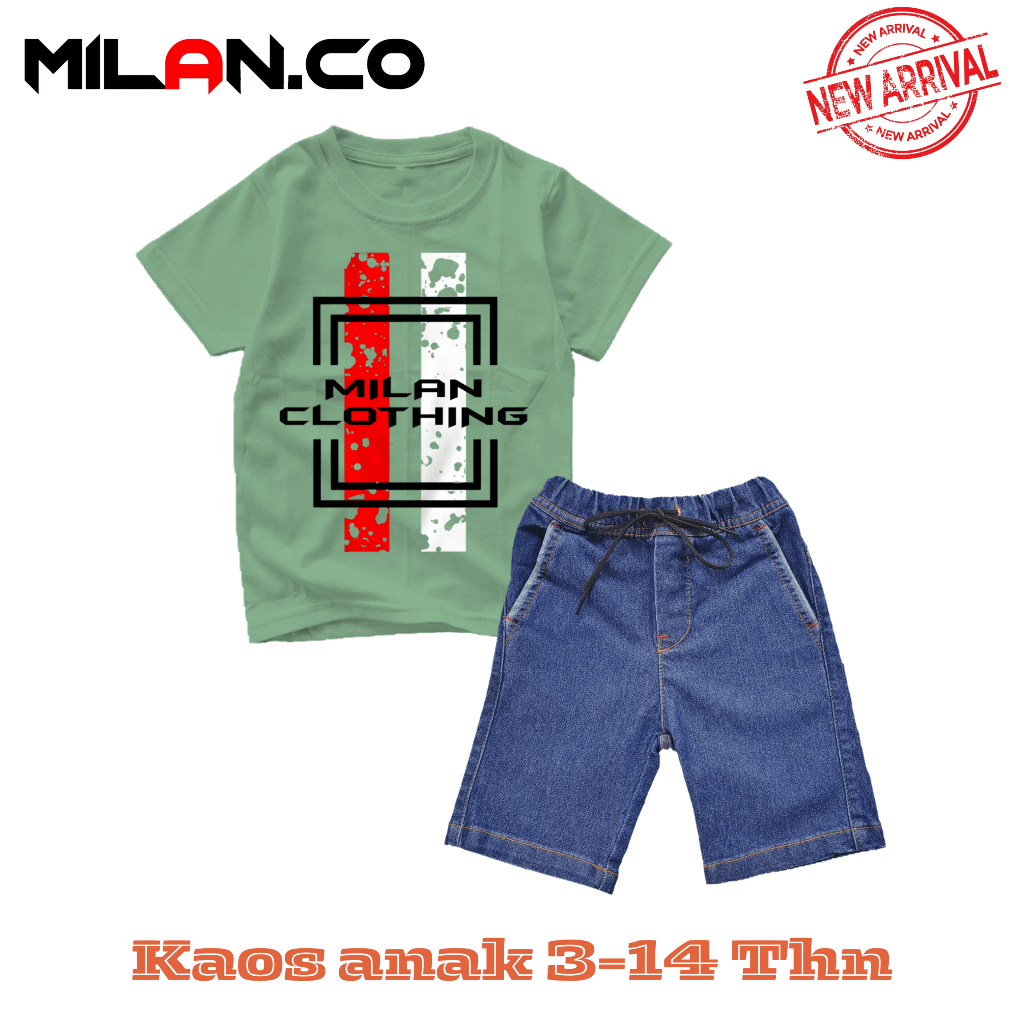 MILAN.CO SETELAN KAOS DISTRO ANAK LAKI LAKI CELANA JEANS DENIM PENDEK UMUR 3-14 TAHUN MOTIF TERBARU
