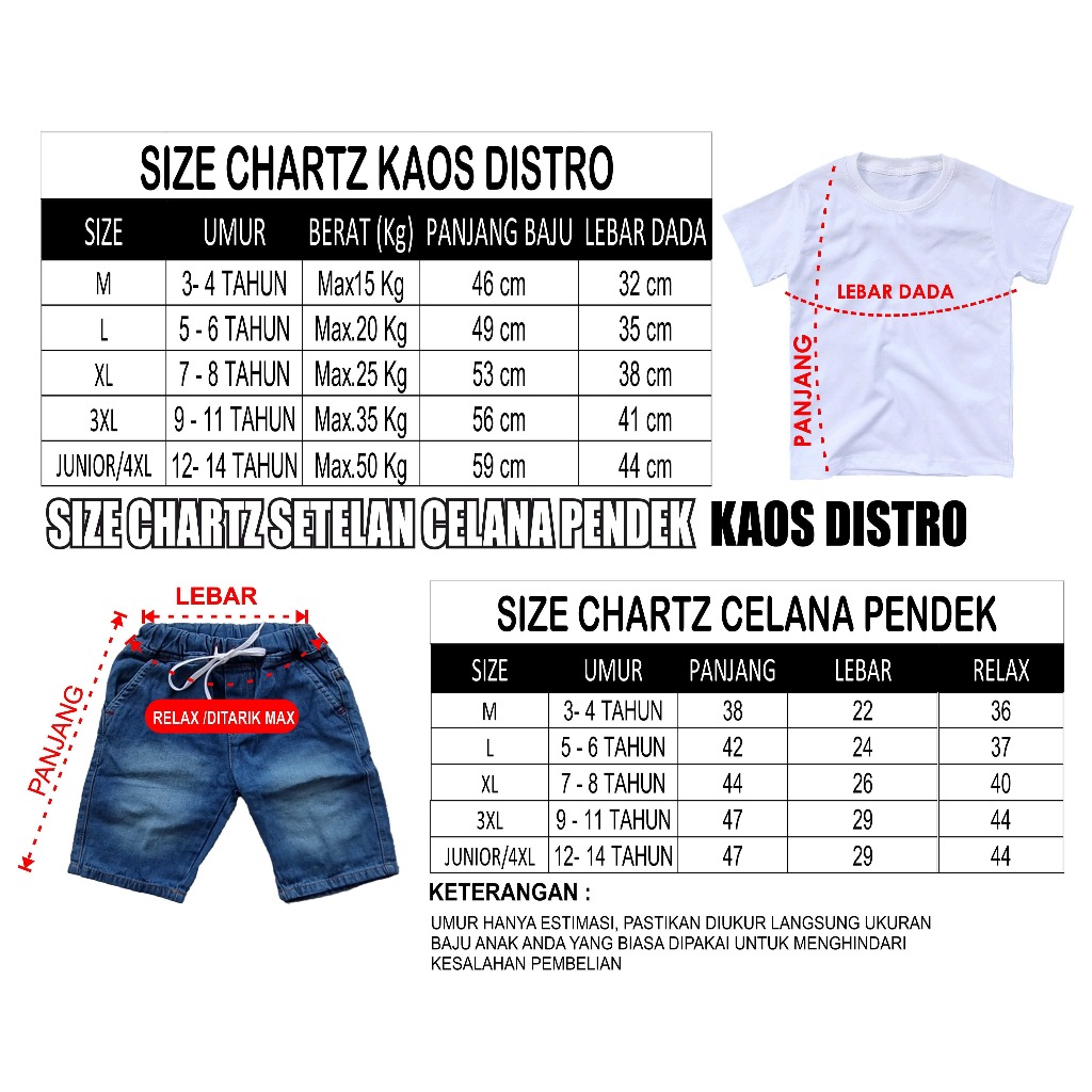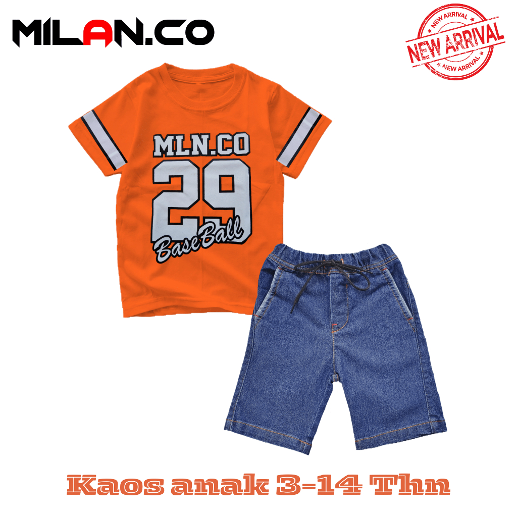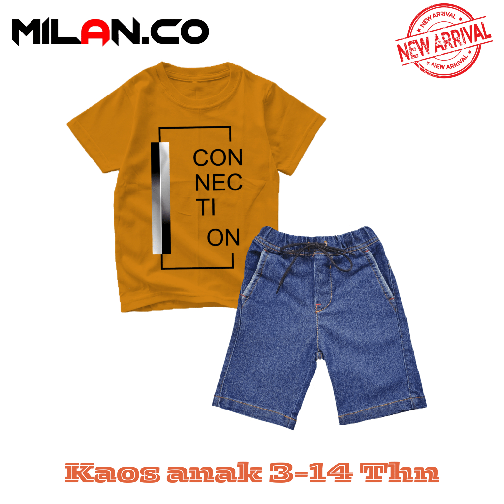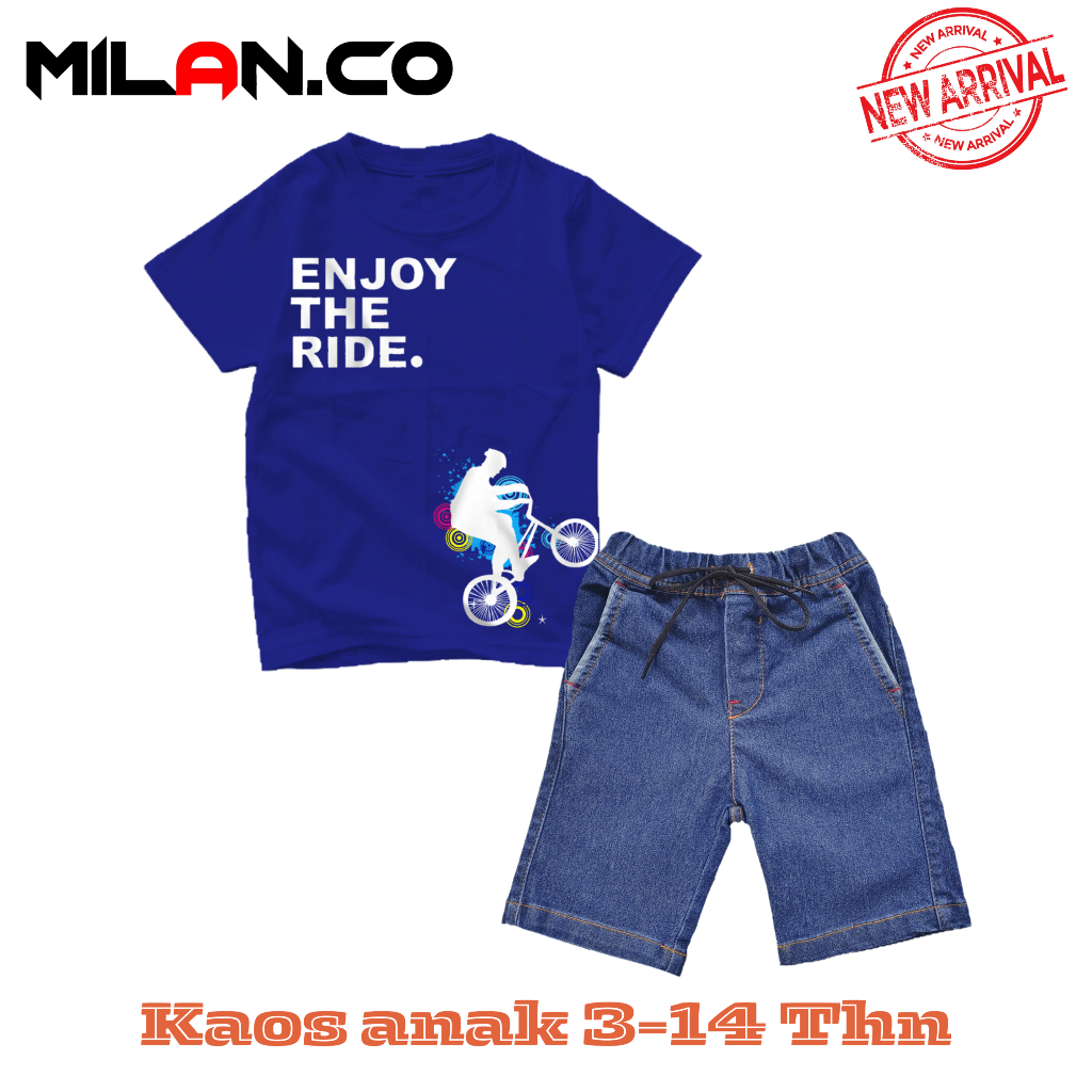 MILAN.CO SETELAN KAOS DISTRO ANAK LAKI LAKI CELANA JEANS DENIM PENDEK UMUR 3-14 TAHUN MOTIF TERBARU