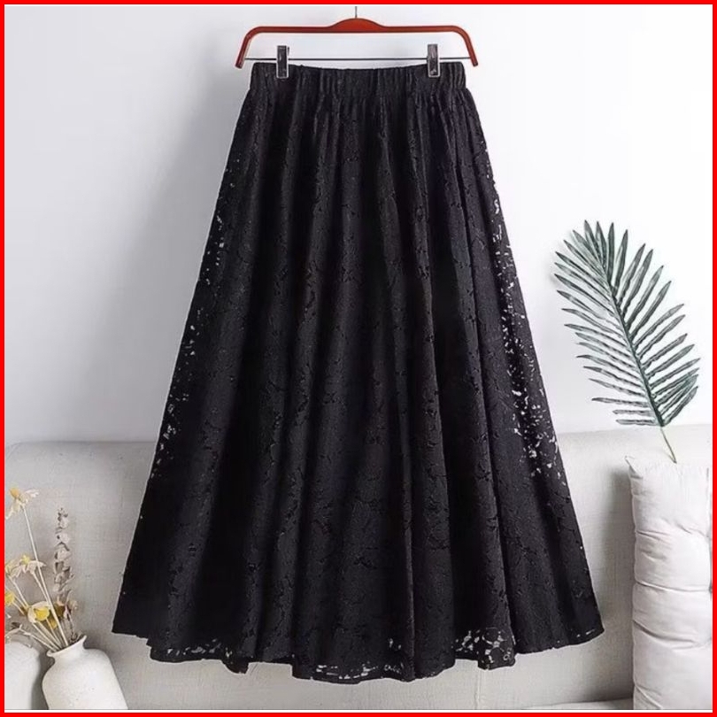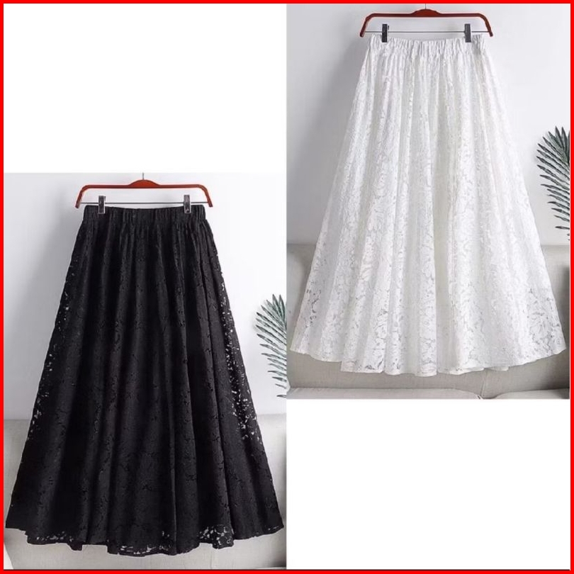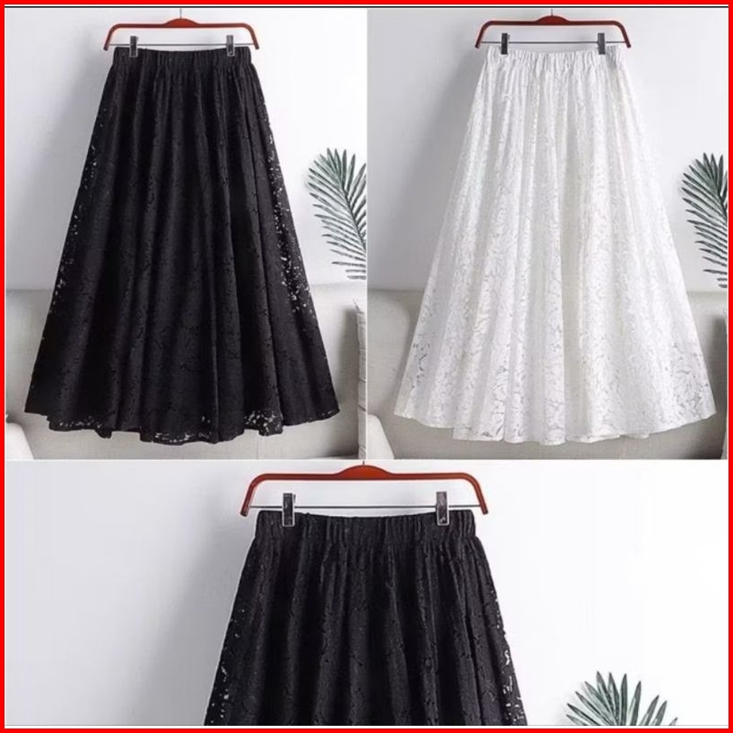 Bawahan Wanita Rok Lady Lace Skirt Vintage With Elastis Waistbrand Black And White Style Jumbo