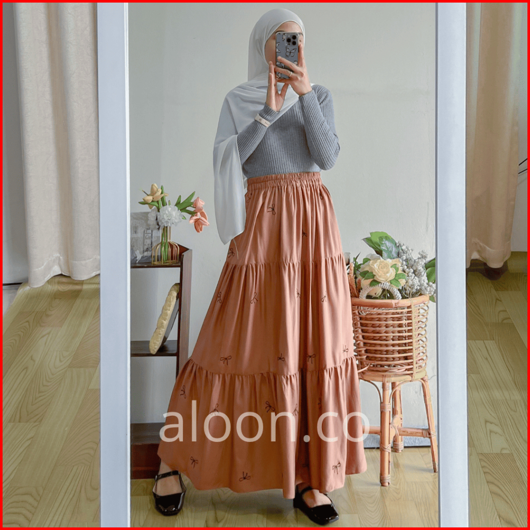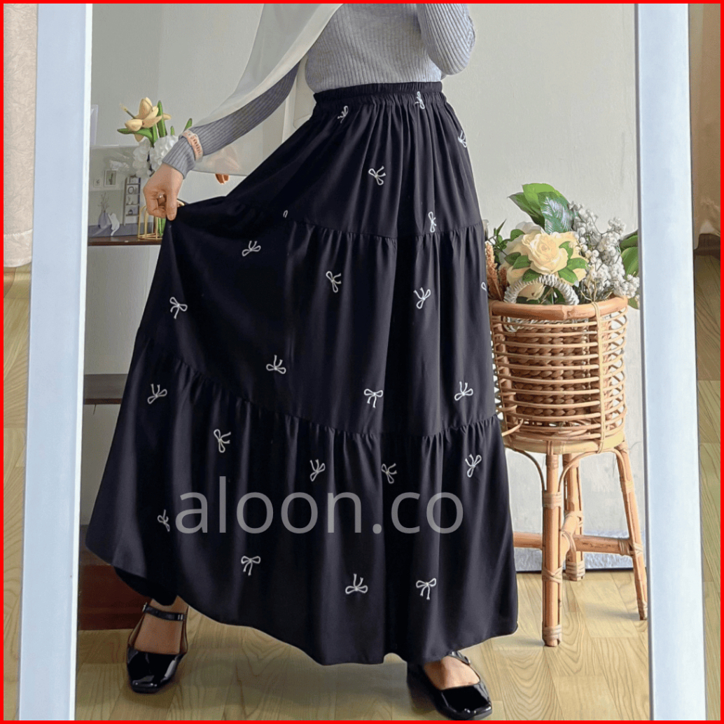 Kiyomi Rok Rempel Bordir Pita Rayon Twill Premium Rok Korean Style Wanita