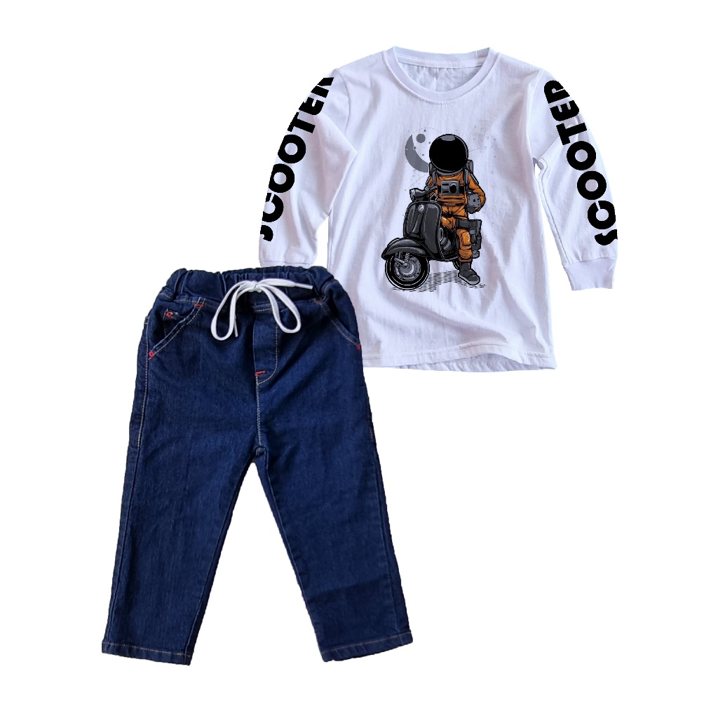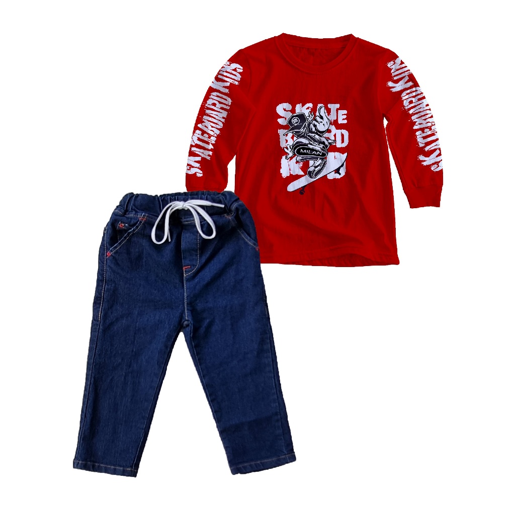 MILAN.CO - SETELAN ANAK TERBARU UMUR 1-14 TAHUN SATU SET TANGAN PANJANG+CELANA DENIM