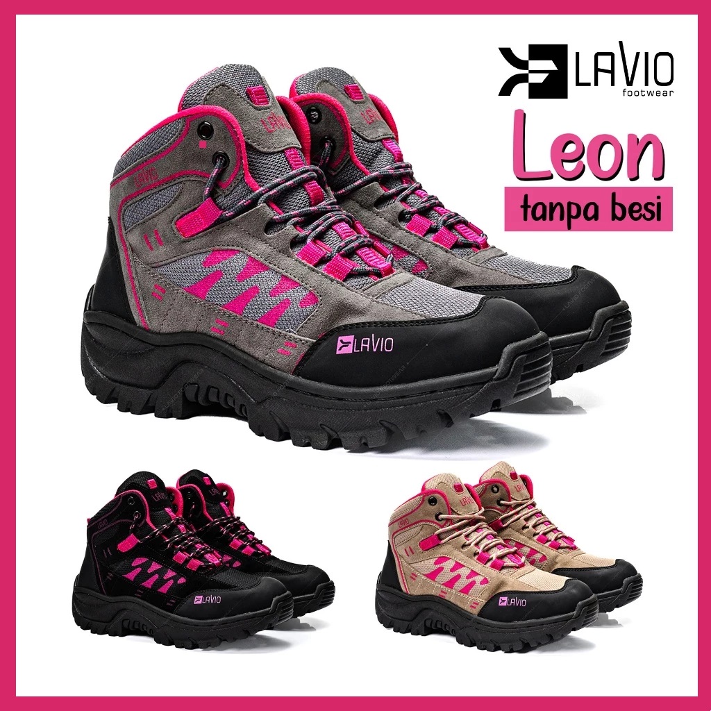 Lavio axel Sepatu Gunung Boots Wanita Cewek women wanita Leon Original Abu Krem Hitam