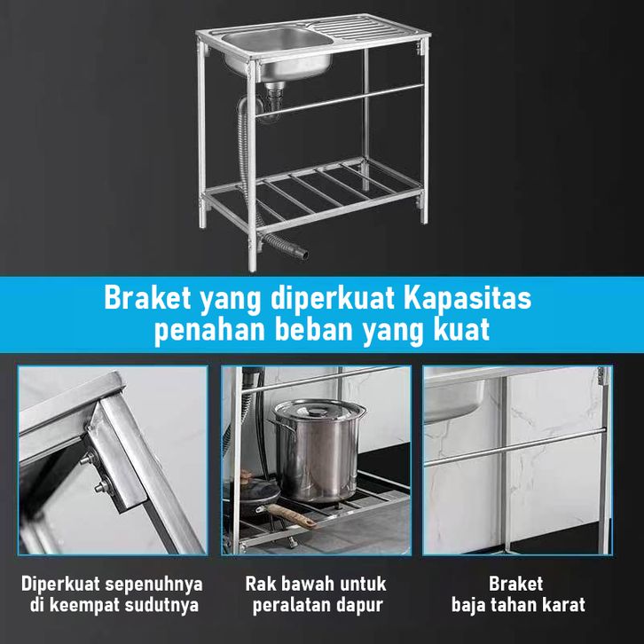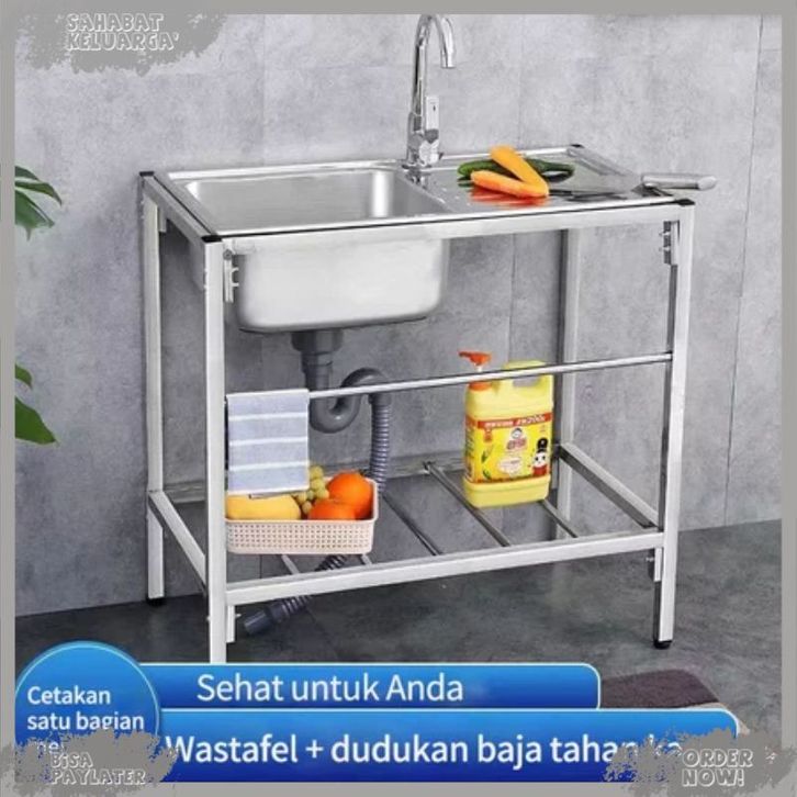 Sus304 Paket Bak Cuci Piring Braket Wastafel Cuci Piring Stainless Sink Kitchen Set Peark75*40cm