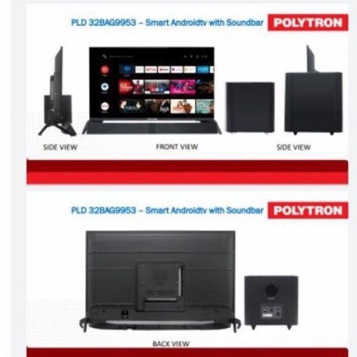 LED SMART POLYTRON Smart Android Cinemax Soundbar LED TV 32 inch PLD 32BG9058 Led Soundbar