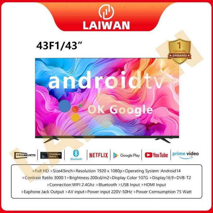 [LAIWAN] Frameless Smart TV Android 43 Inch 50 Inch smart tv AI Voice