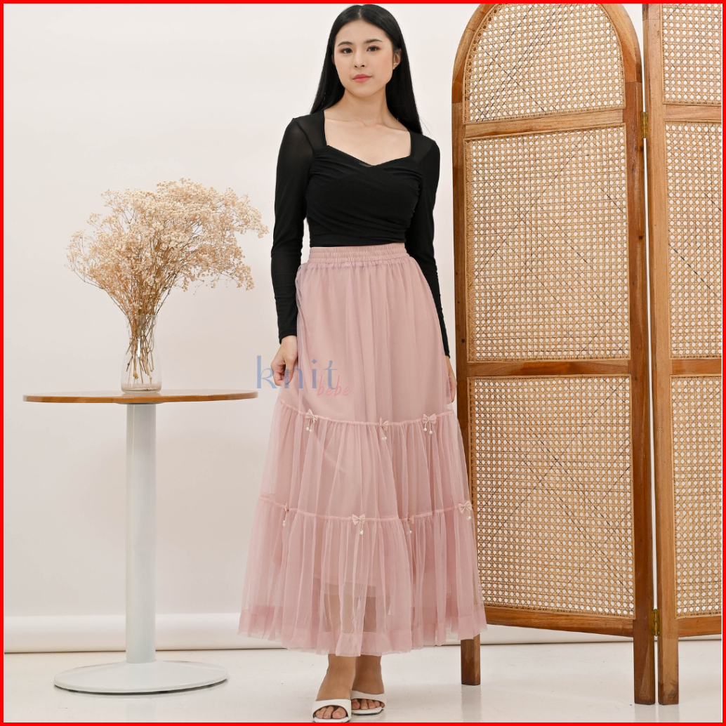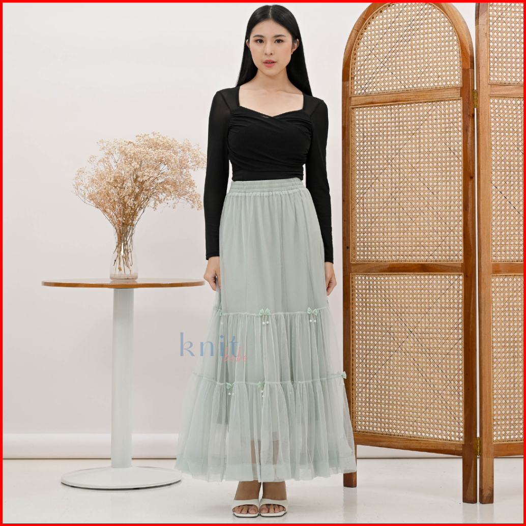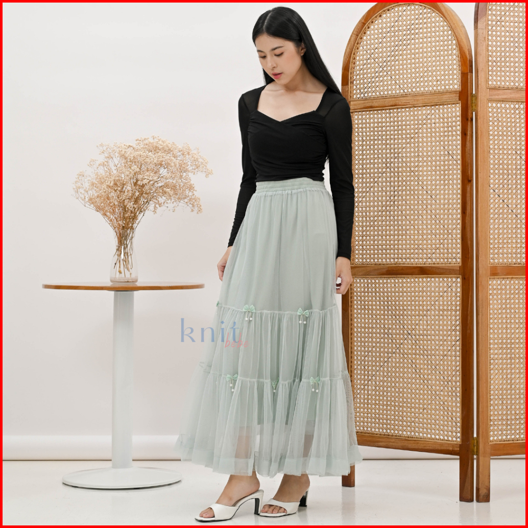 Knitbebe - Luna Long Skirt Rok Wanita Motif Pita Coquette