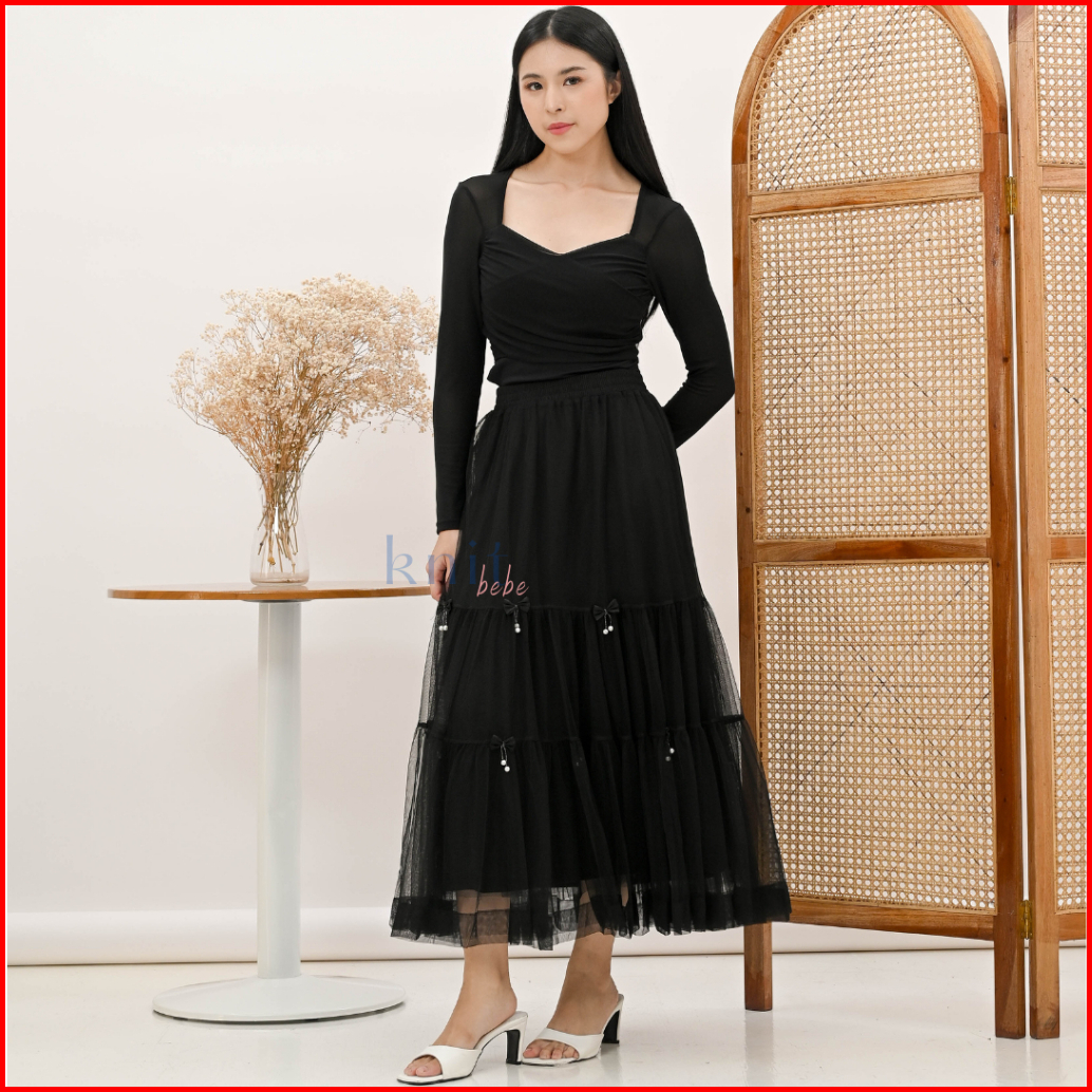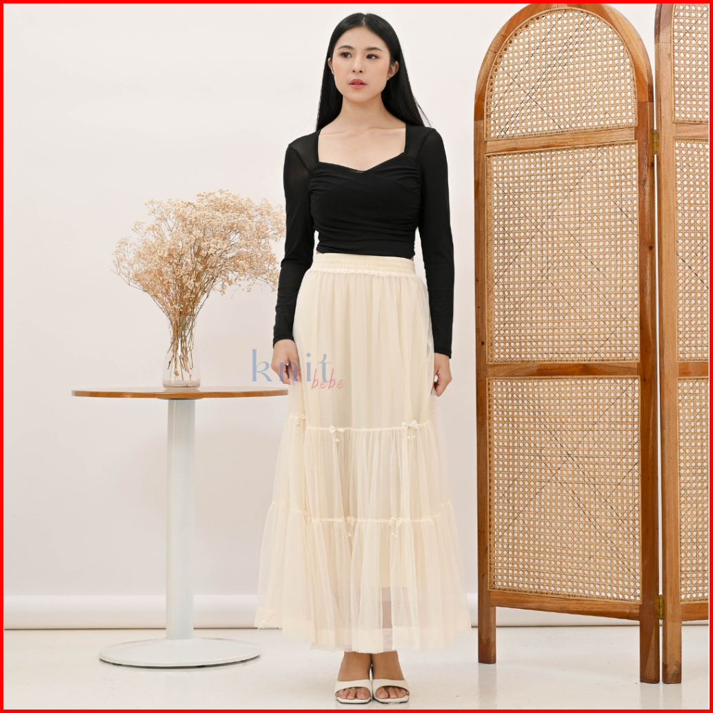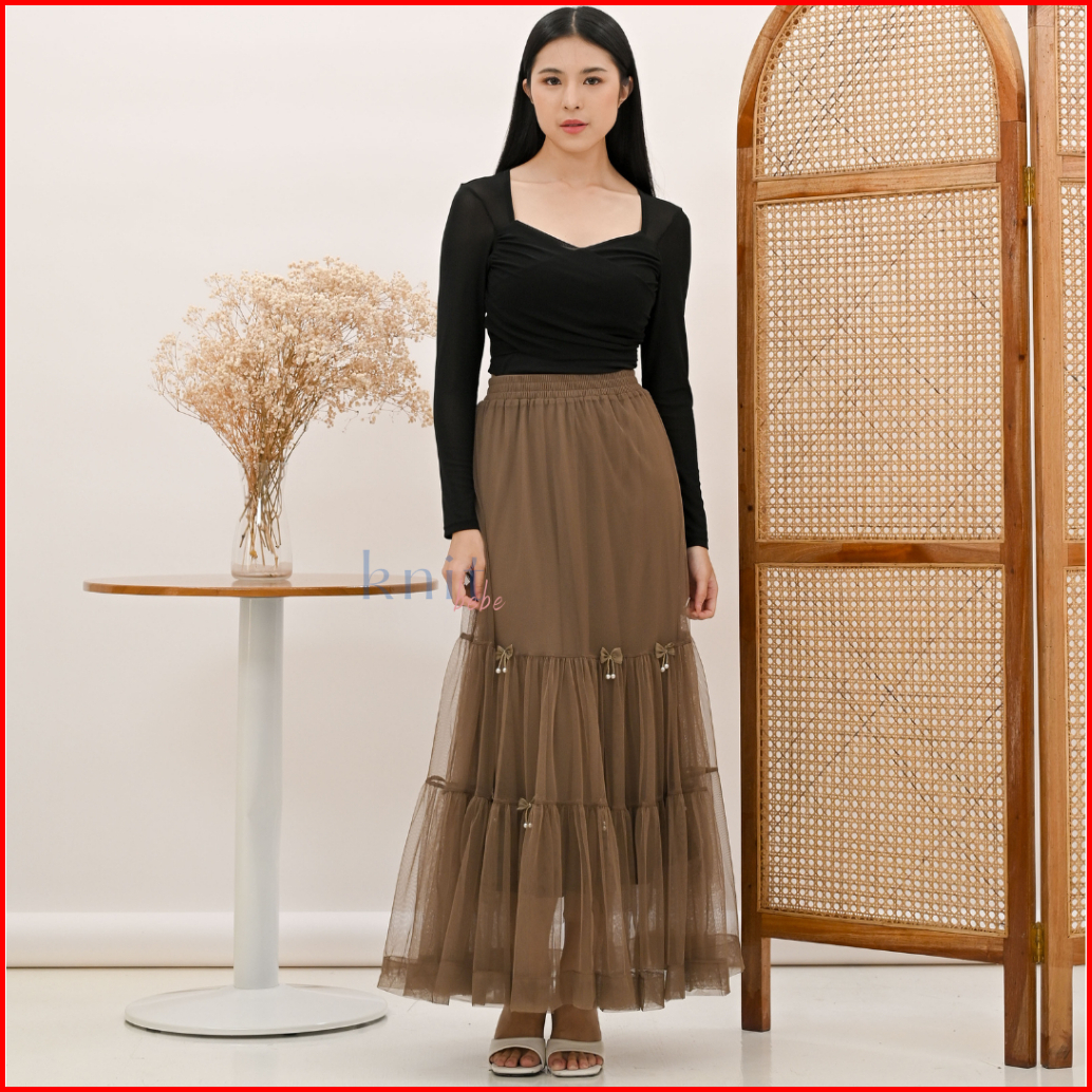Knitbebe - Luna Long Skirt Rok Wanita Motif Pita Coquette