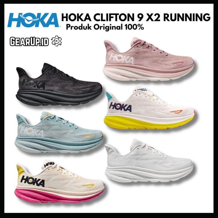 Sepatu Lari Wanita HOKA ONE CARBON CLIFTON 9 X2 RUNNING SHOES OLAHRAGA SNEAKERS 100% sepatu olahraga original