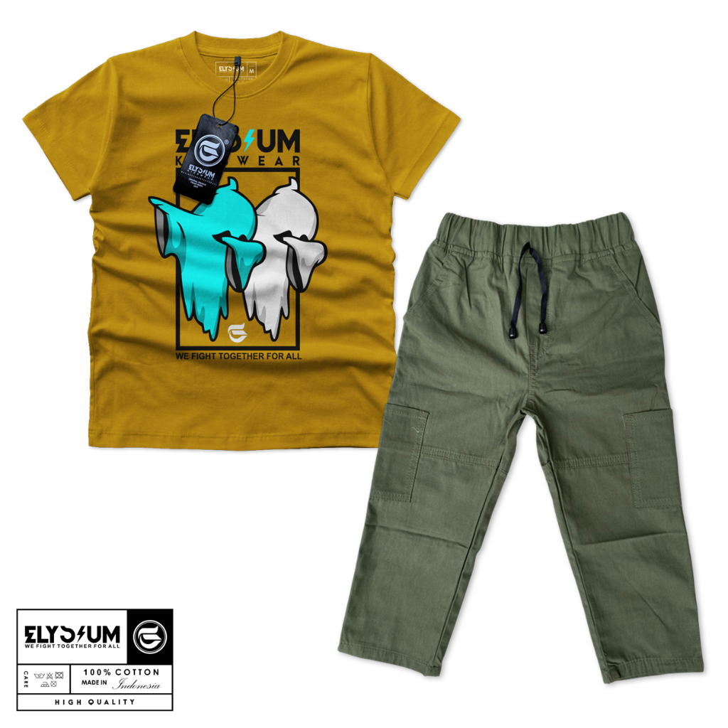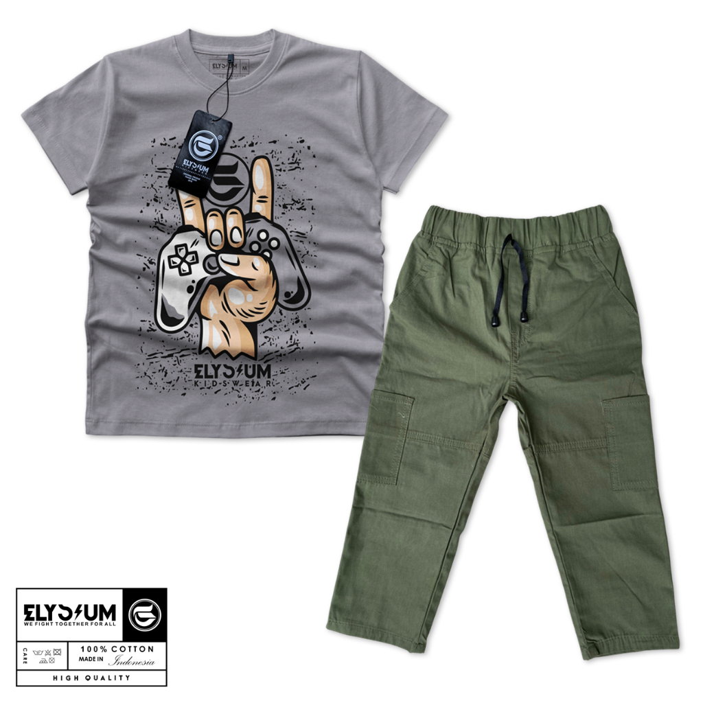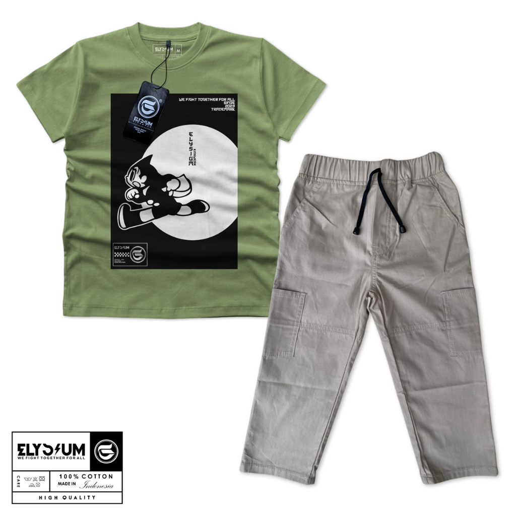 ELYSIUM KIDSWEAR SETELAN CARGO PANJANG DAN BAJU KAOS ANAK LAKI-LAKI USIA 4-12 TAHUN