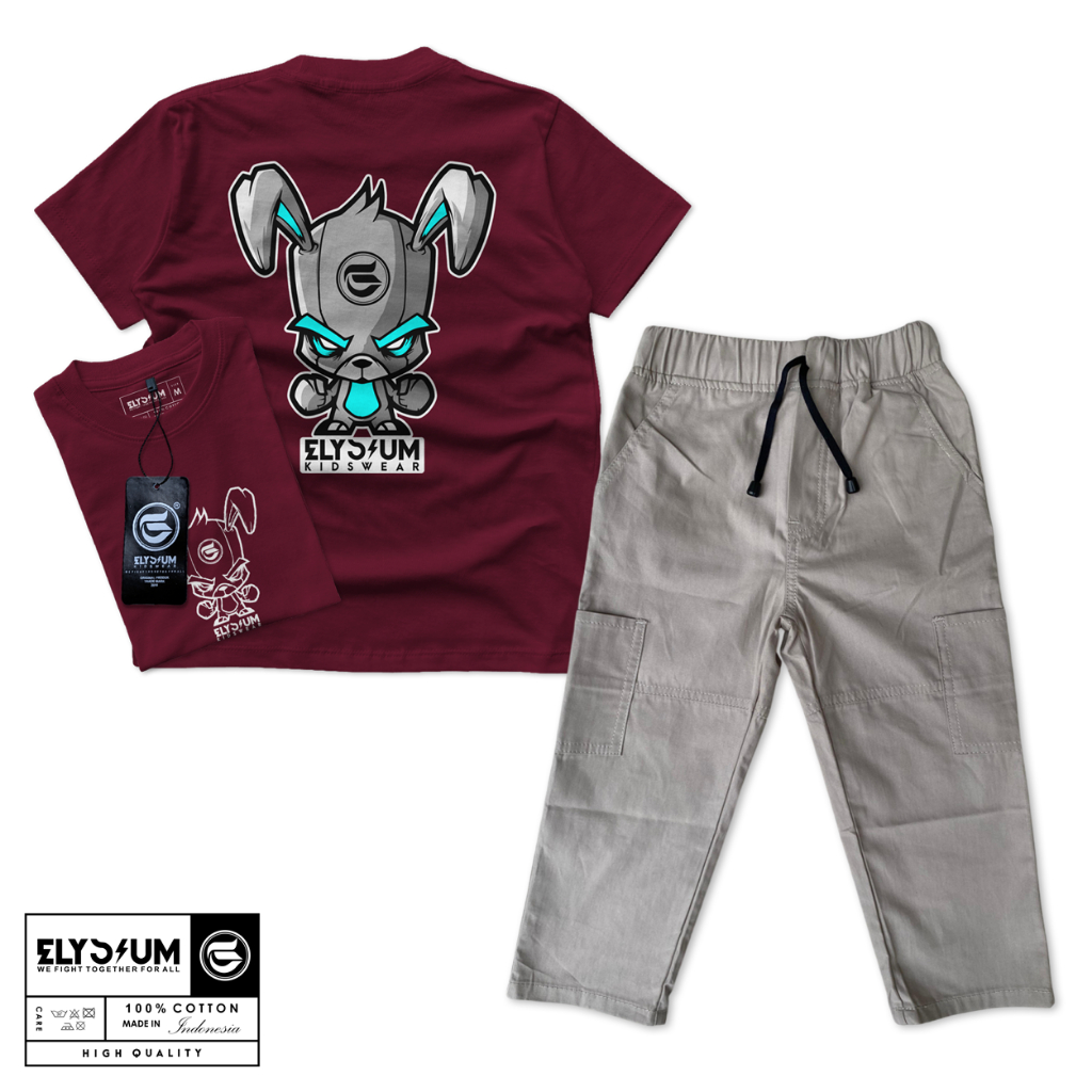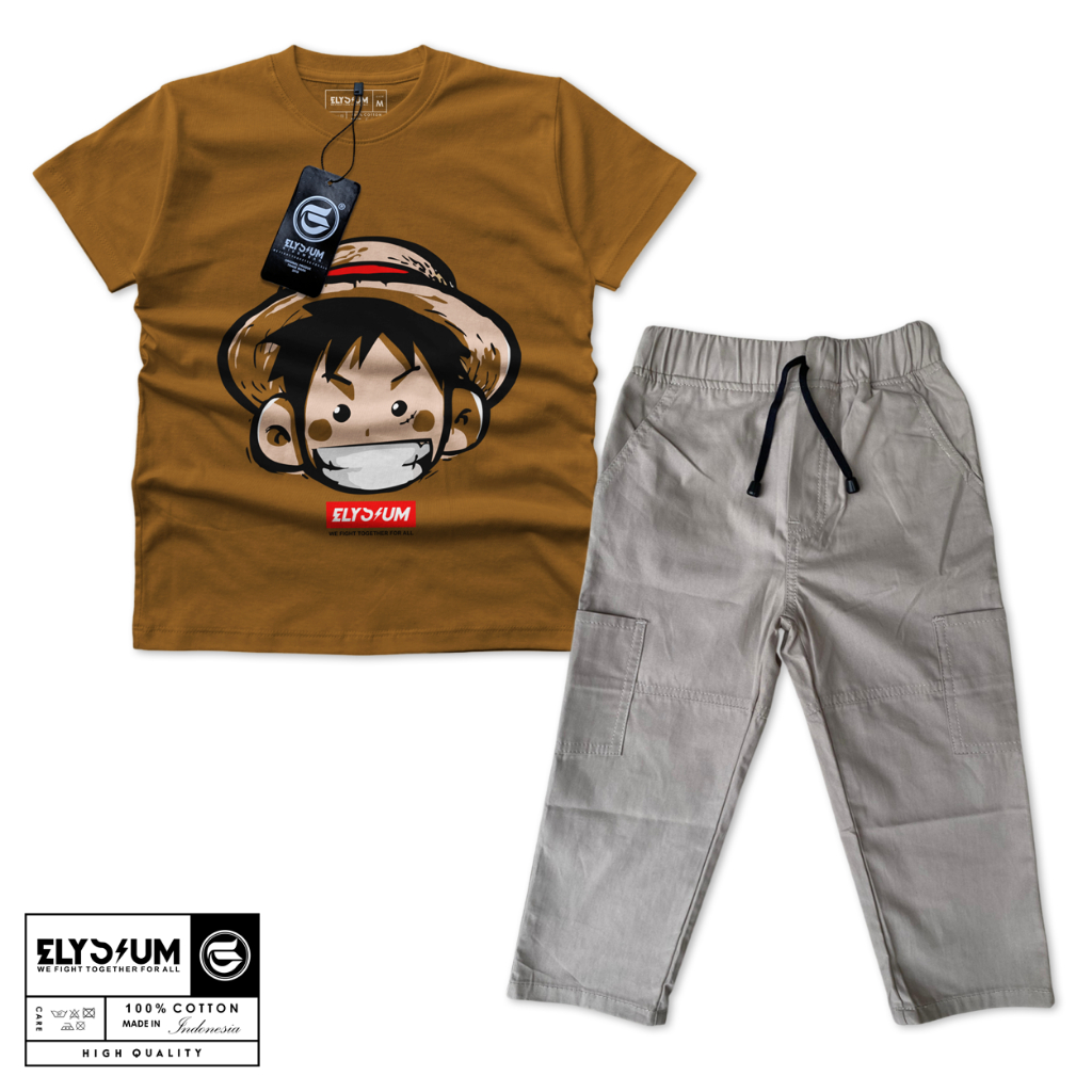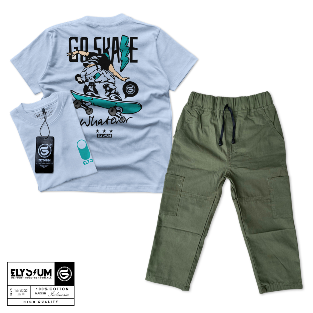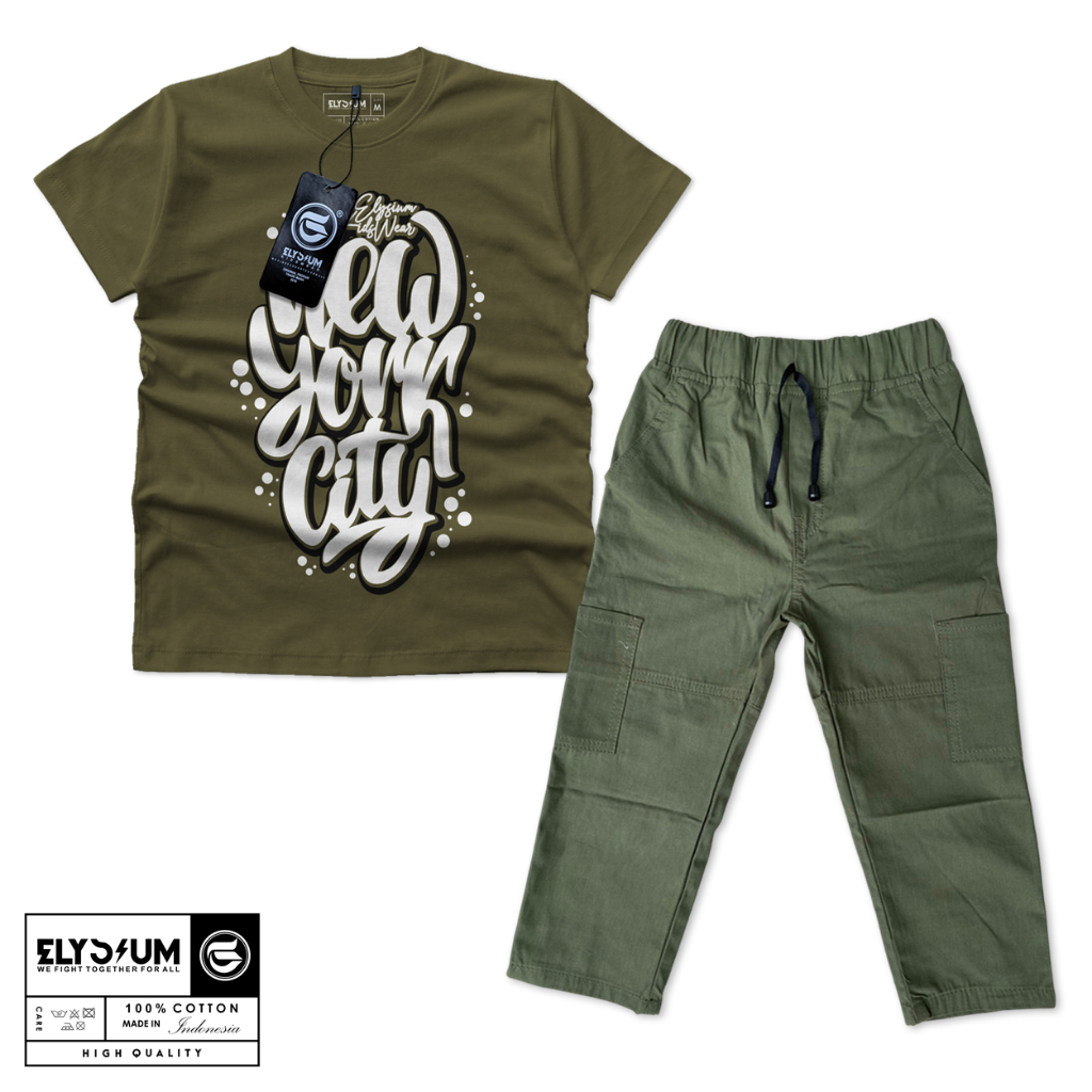 ELYSIUM KIDSWEAR SETELAN CARGO PANJANG DAN BAJU KAOS ANAK LAKI-LAKI USIA 4-12 TAHUN