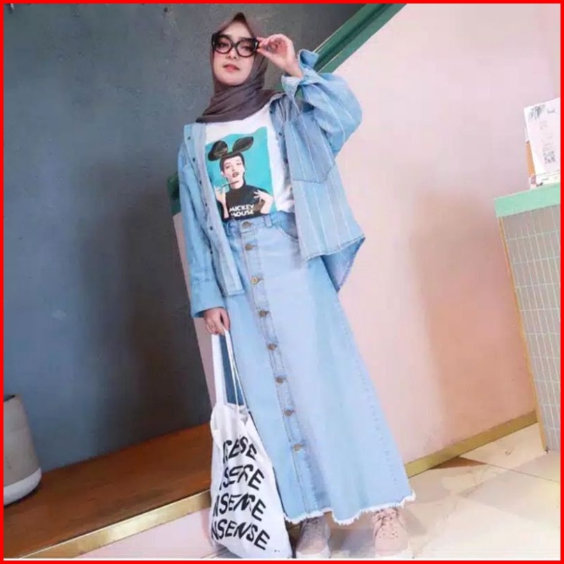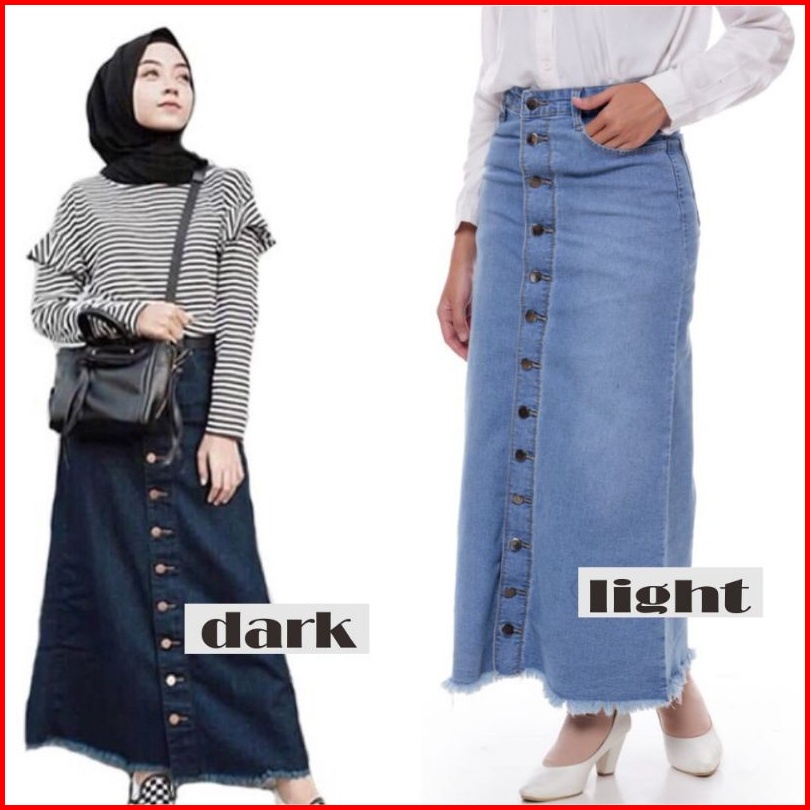 Rok Panjang Gisca Kancing Depan . Rok Jeans Panjang Kancing Depan Murah Korean Staill