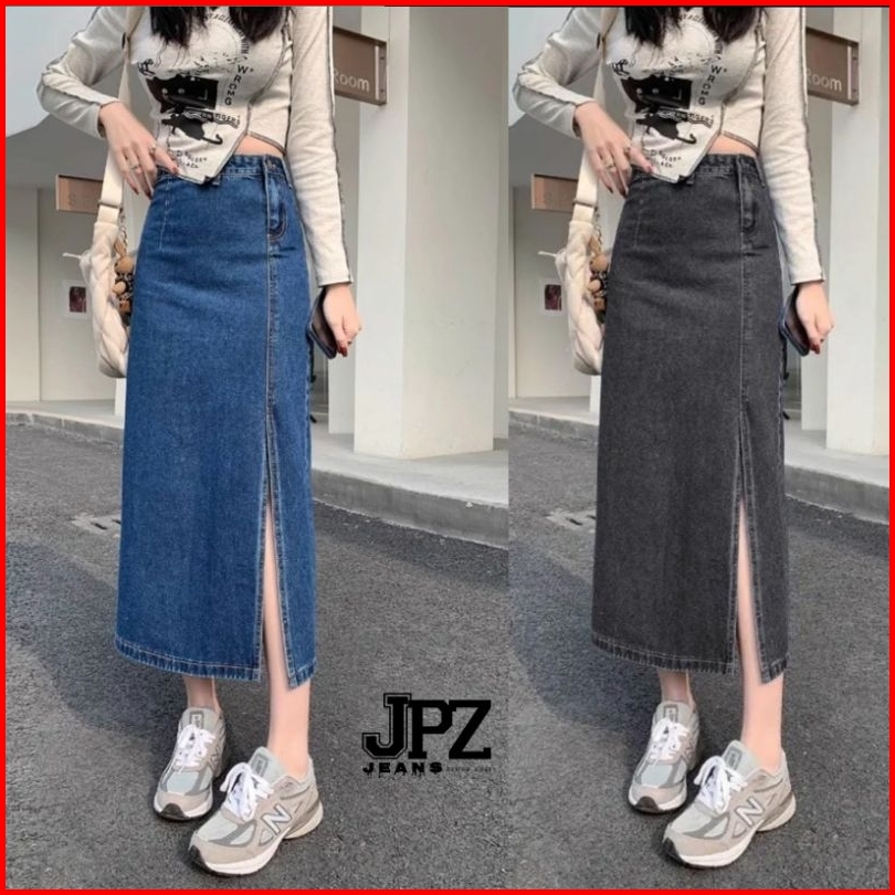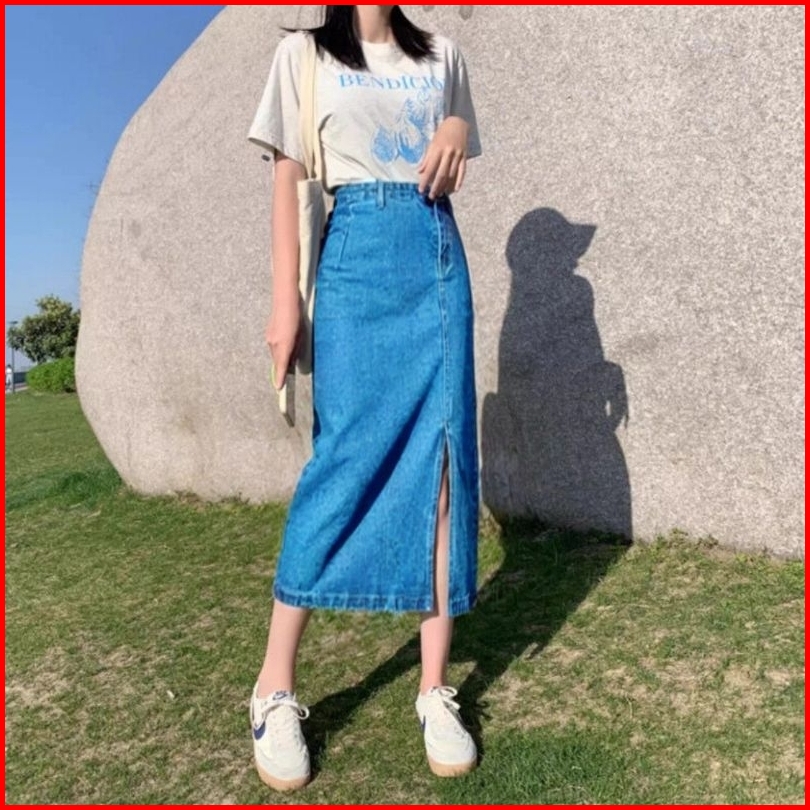 Rok Jeans Higwaist Belah Samping Korean Style Rok A-line