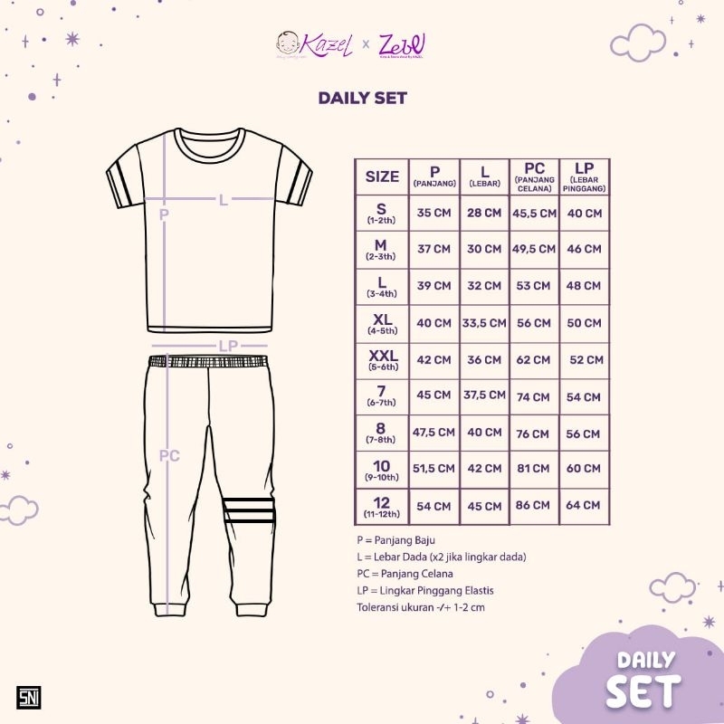 KAZEL X ZEBE DAILY SET PENDEK PANJANG 1-12THN (1STEL)