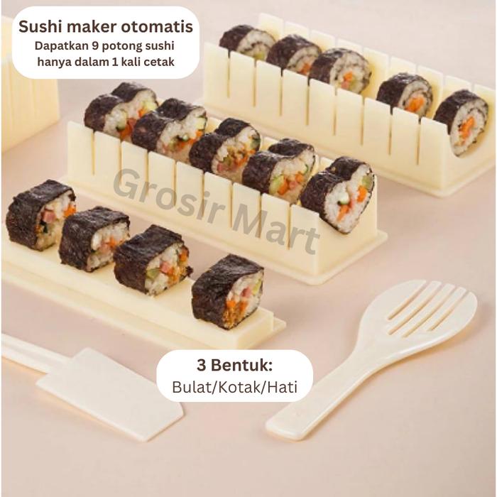 Cetakan Sushi Gulung Roll Motif Bulat Kotak Hati Roll Cetakan Sushi Maker Otomatis Praktis Set - Sushi Roll BULAT