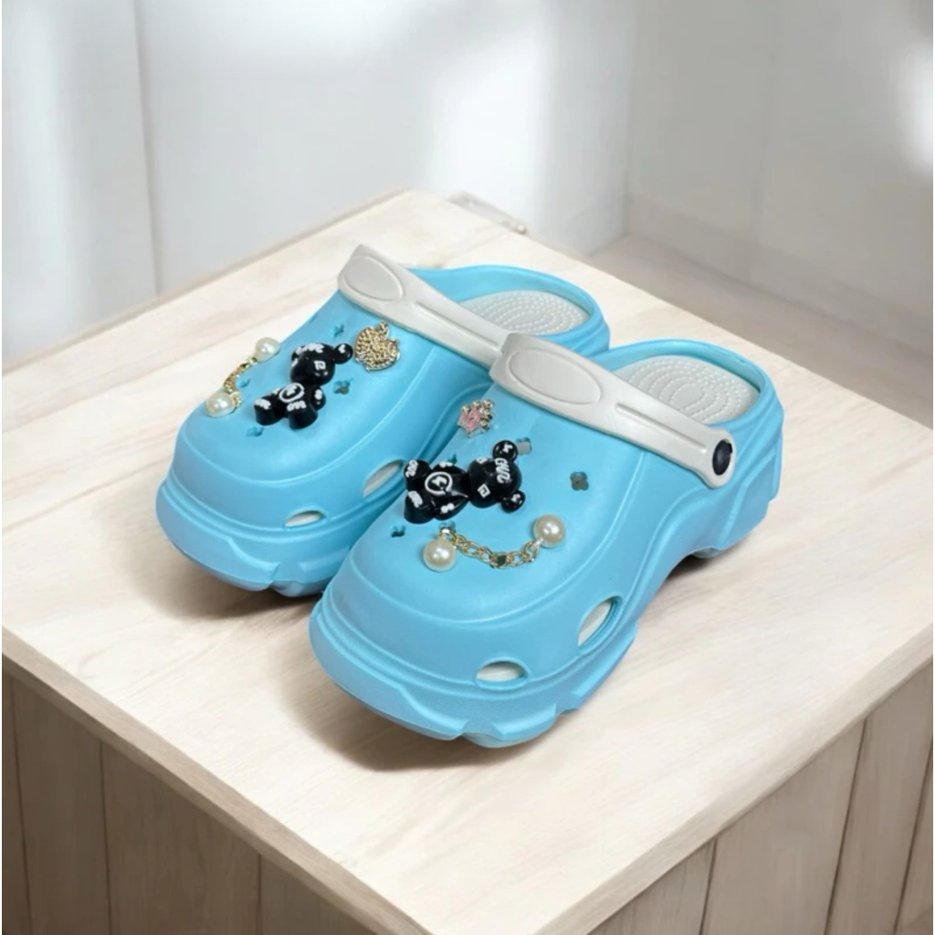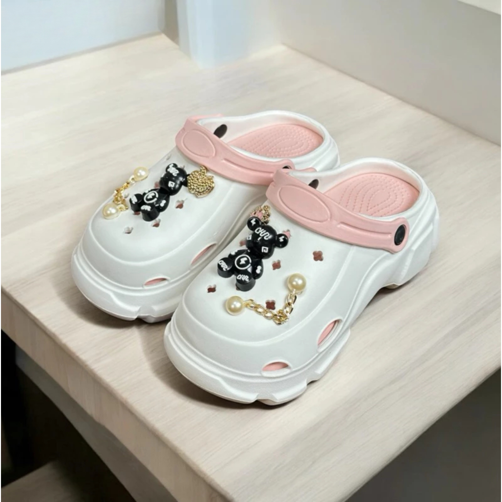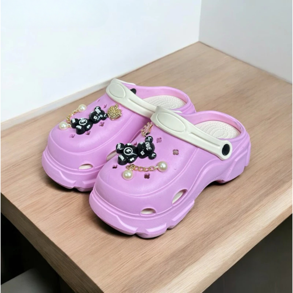 Sandal Baim Fuji Anak Perempuan Wedges Jibbits Beruang Kaws Sendal Crop Cross Tinggi Cewek Bahan Karet Eva Ringan Size 2