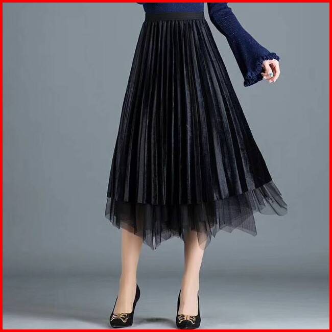 Rok Tutu Velvet Suede Plisket Bisa Bolak Balik