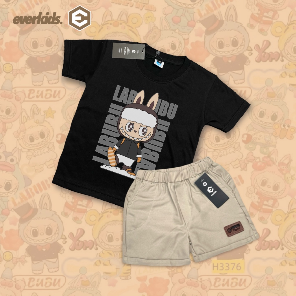 EVERKIDS SETELAN KAOS ANAK 1-6 THN SABLON KEREN / KAOS LABUBU / KD 46