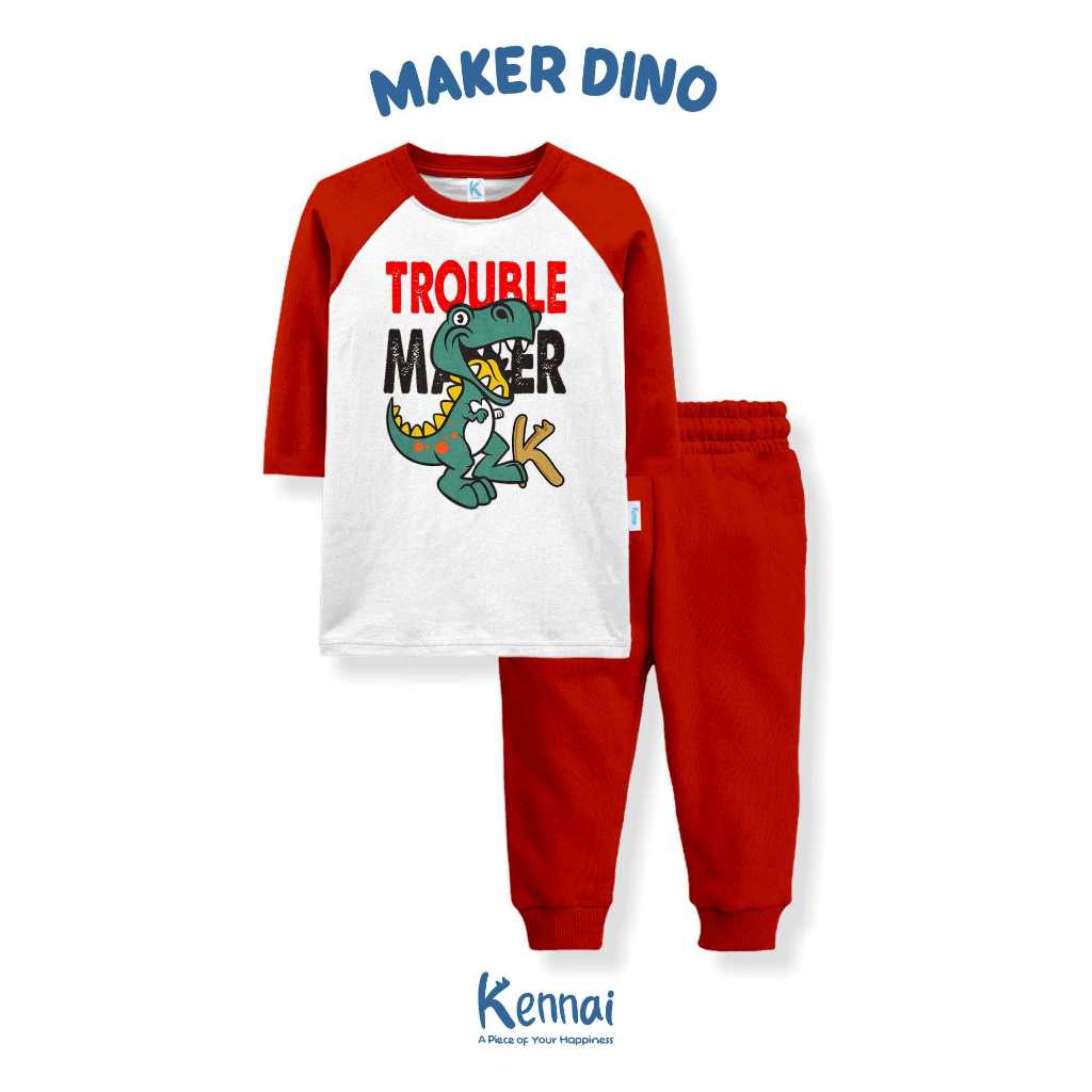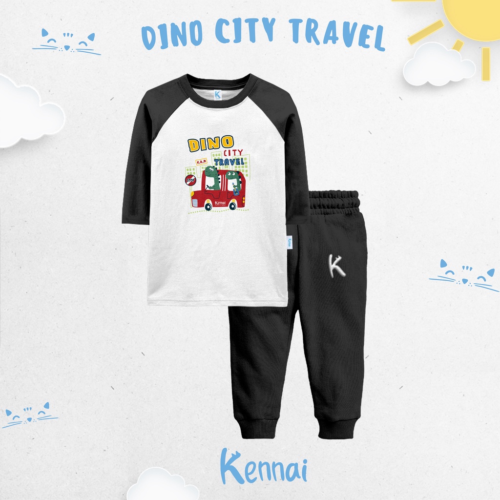 KENNAI SETELAN LONG SLEEVE RAGLAN ANAK DINO SERIES 1-9 TAHUN