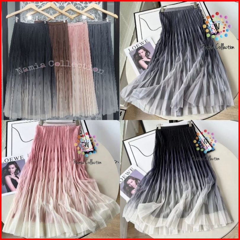 Rok Tutu Plisket Gradasi Import Premium Midi Panjang 7 8