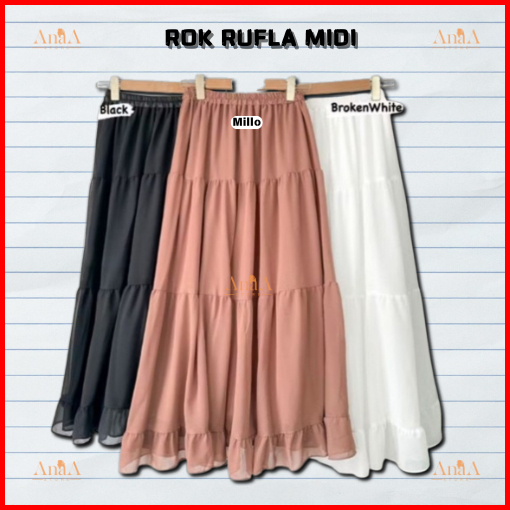 K Uf Midi Skirt Ceruti Ceruty Full Furing Jumbo Besar Panjang Premium Eksklusif Perempuan Wanita