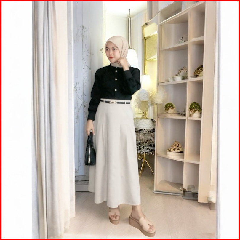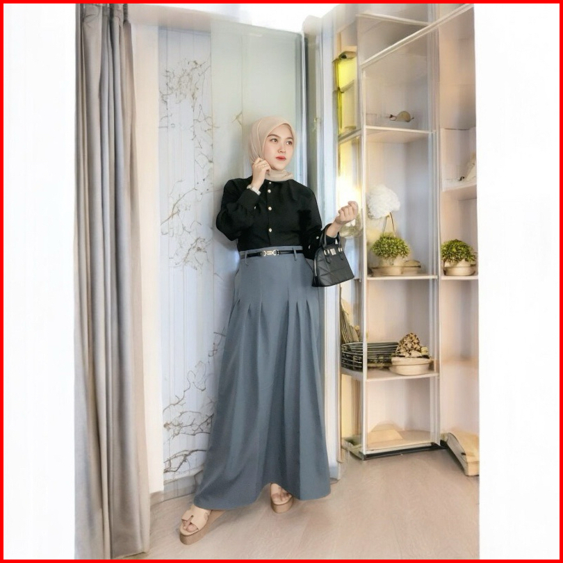 Jesi- Joy Skirt-rok Flare Wanita Korean Style- Bahan Semiwoll Lokal Model Panjang Midi