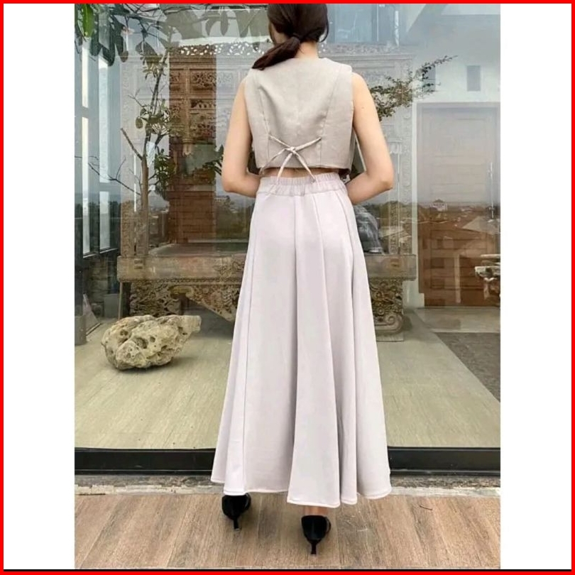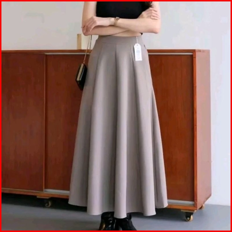 Audy Skirt Korean Loose Maxi Skirt Rok Wanita Anti Kusut Polyester Rok Flare Wanita Rok Basic Polos Maxi Rok Panjang Wan