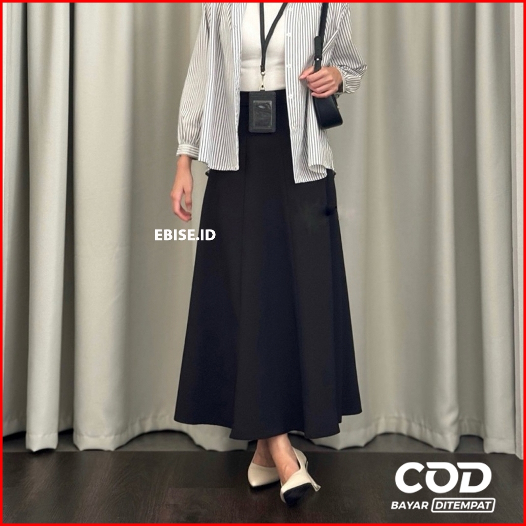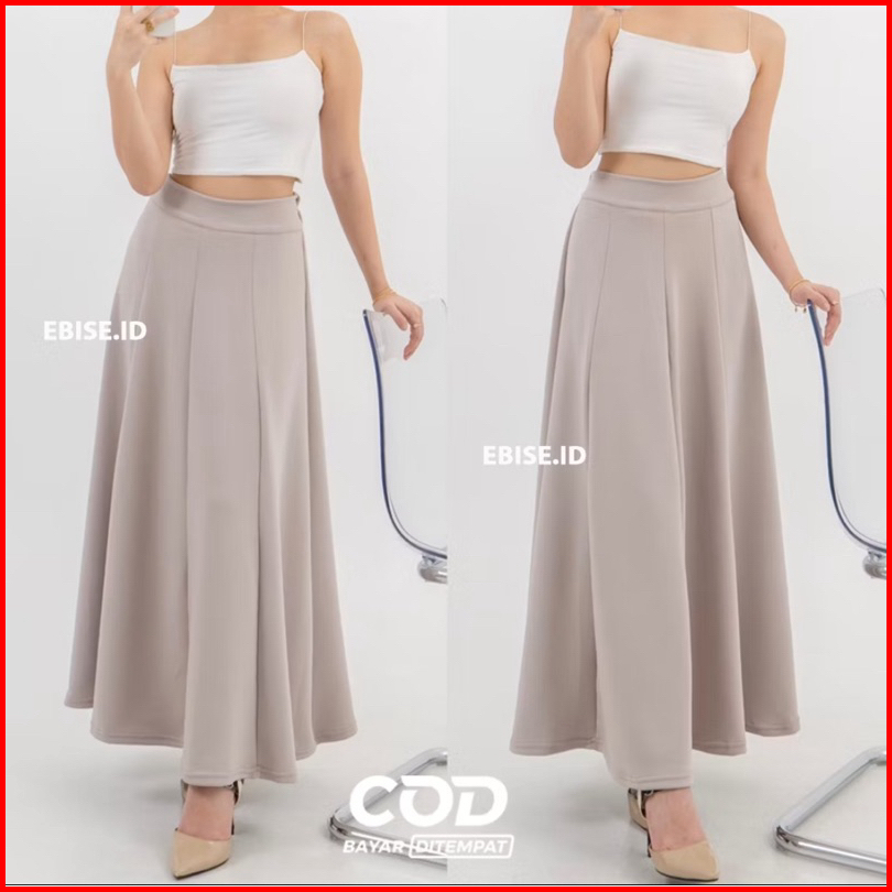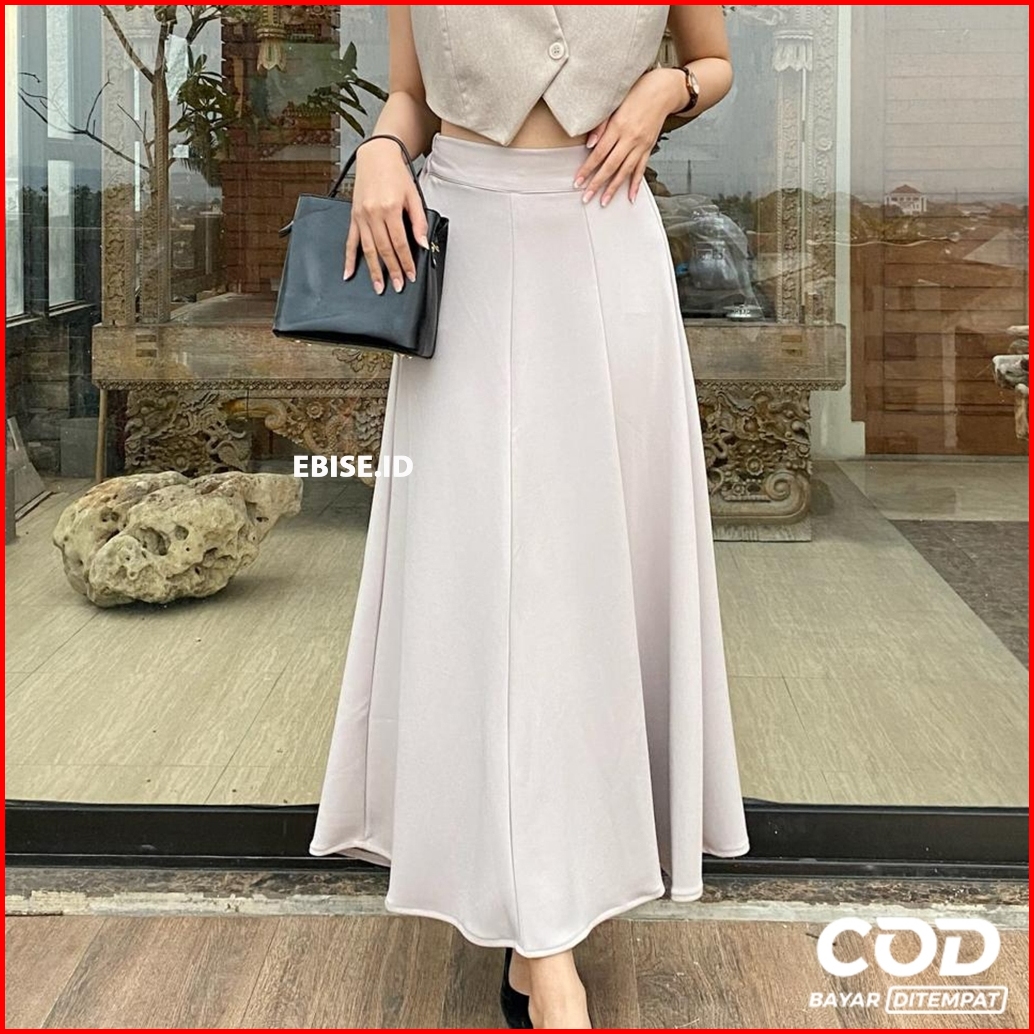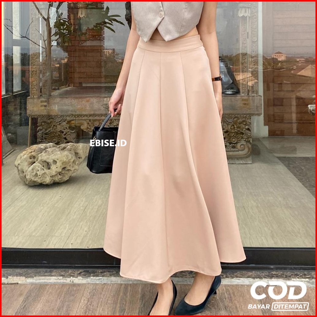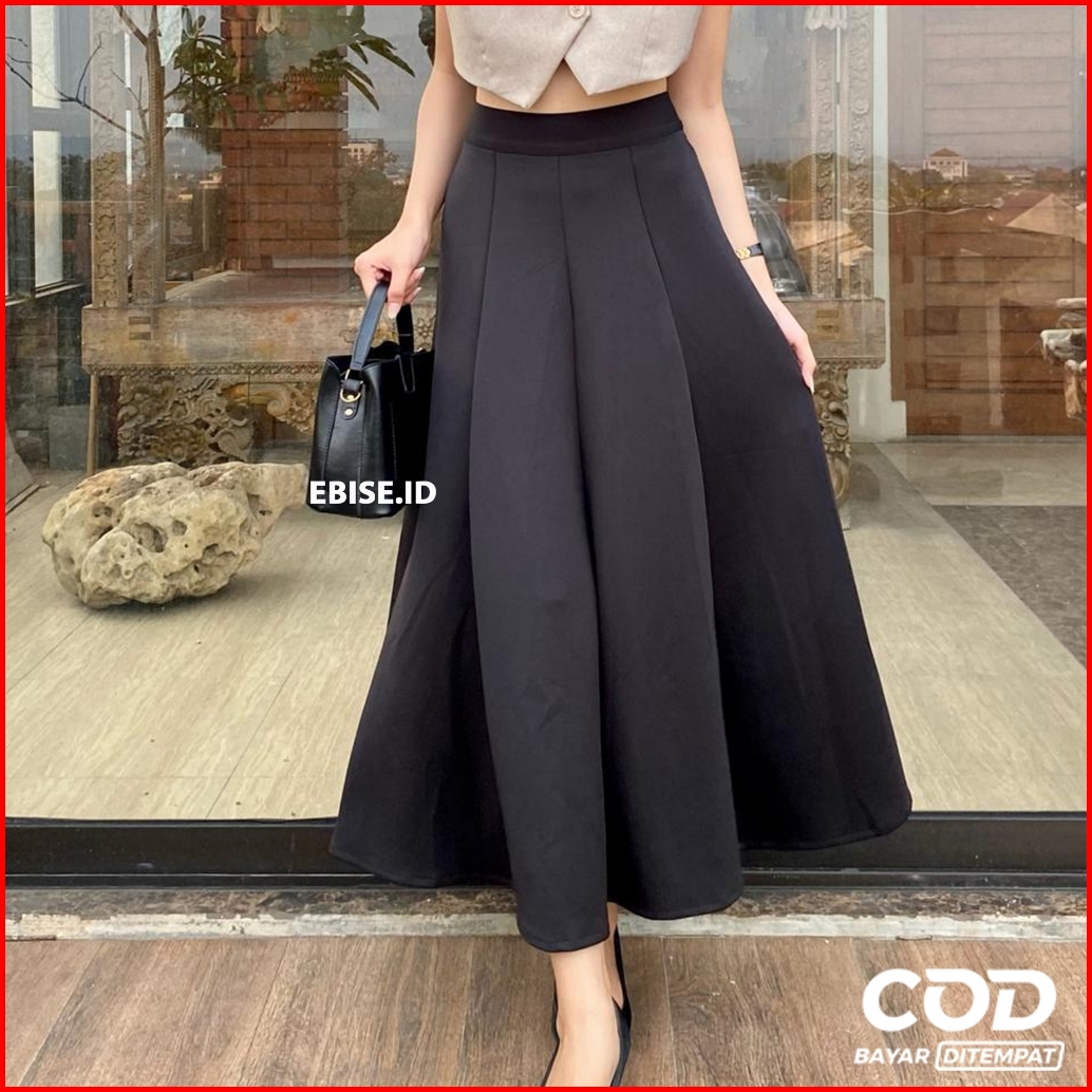 Audy Skirt Rok Flare Wanita Korean Loose Maxi Skirt - Rok Plisket Cewek Anti Kusut Rok Basic Polos Panjang