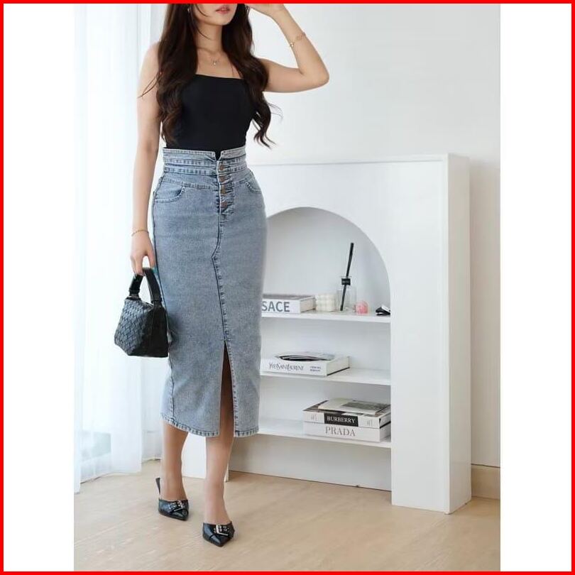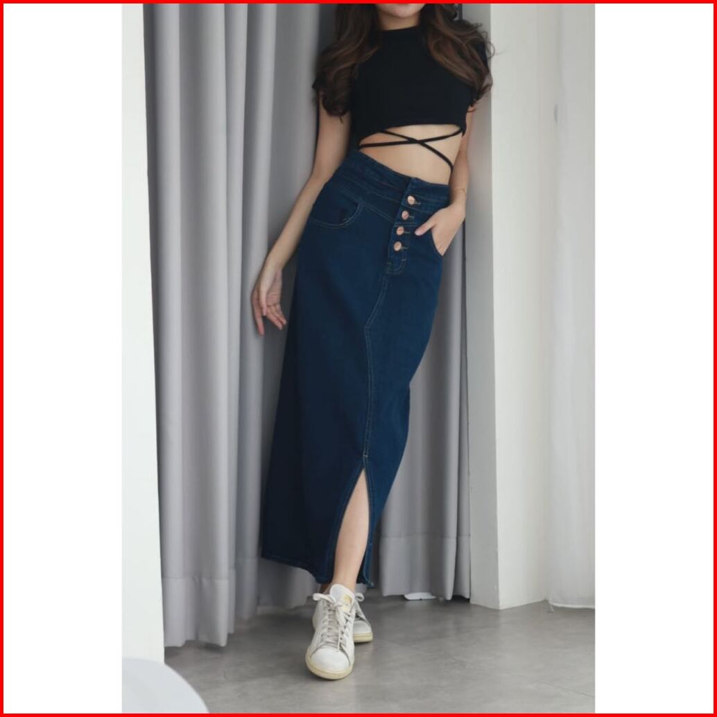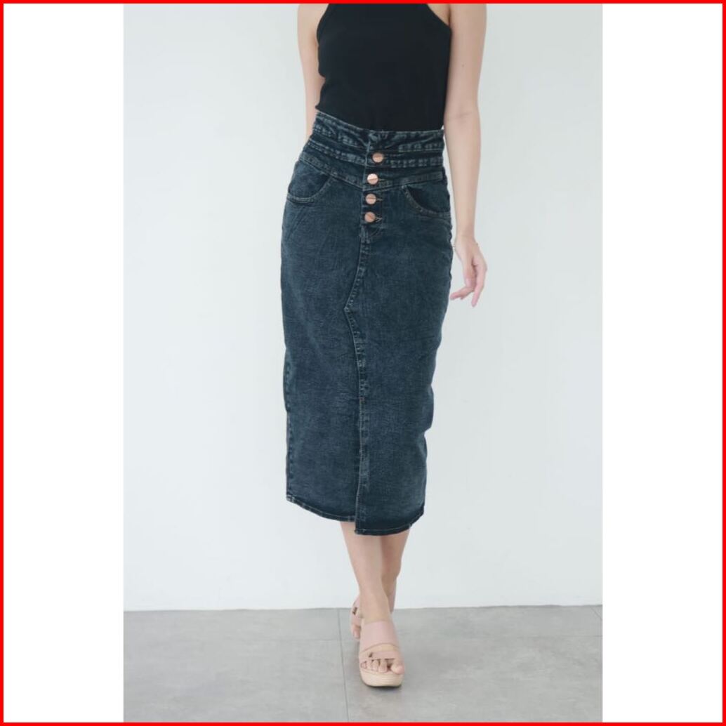 Madelyn Lorin Button Skirt Rok Jeans Wanita