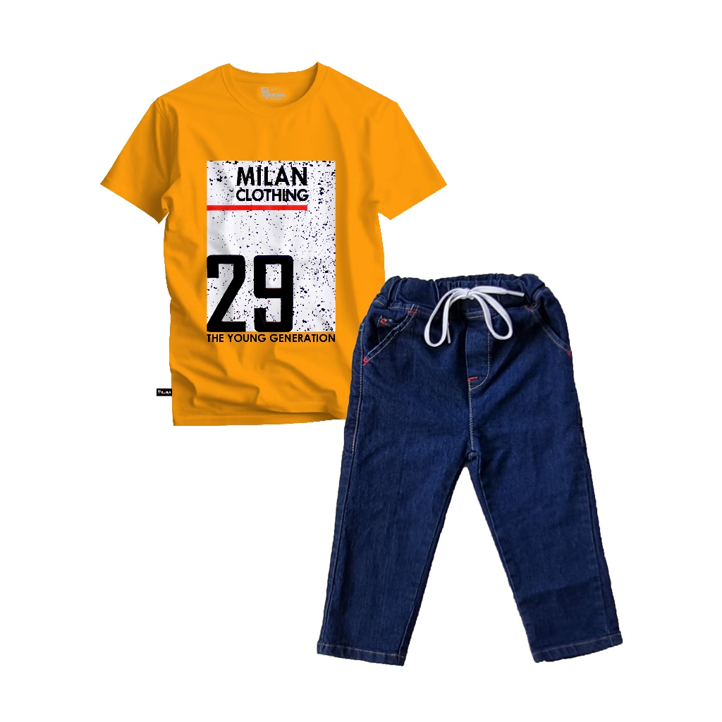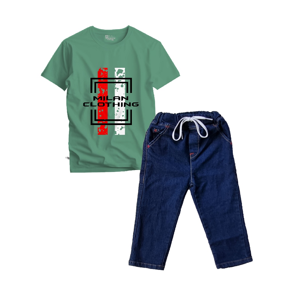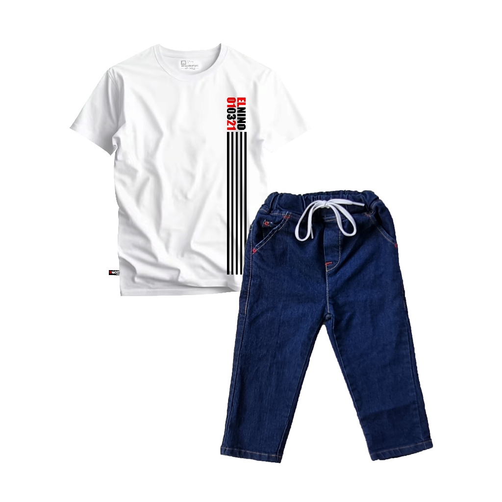 MILAN.CO SETELAN KAOS ANAK CELANA PANJANG JEANS PREMIUM ANAK UNISEX 1-14TAHUN TANGGUNG