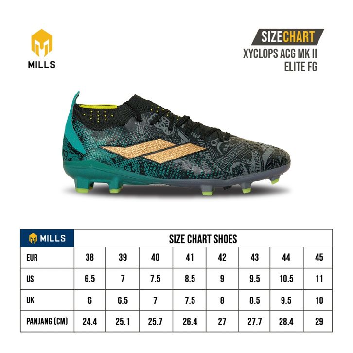 ( ORIGINAL ) MILLS Sepatu Sepakbola Xyclops ACG MK II Elite FG Phantom. Black / Spectra.Green 9303502