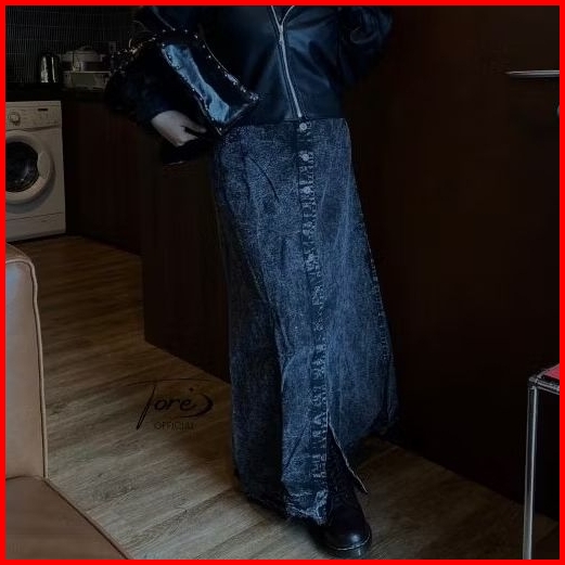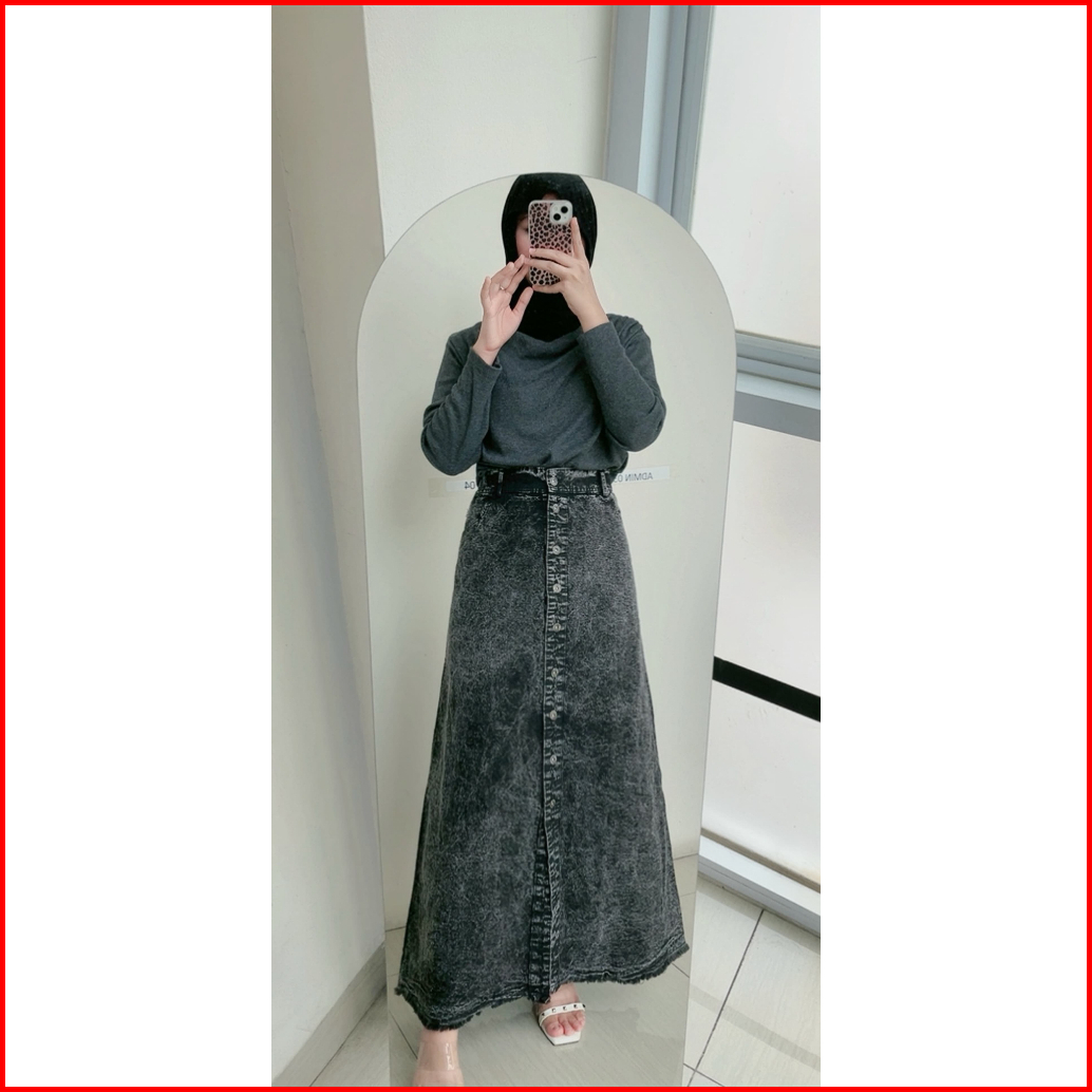 Tore- Rok Button Jeans Panjang Kancing Depan Up Maxi Skirt Snow Lady
